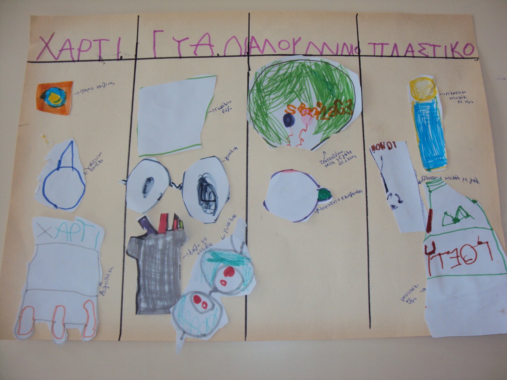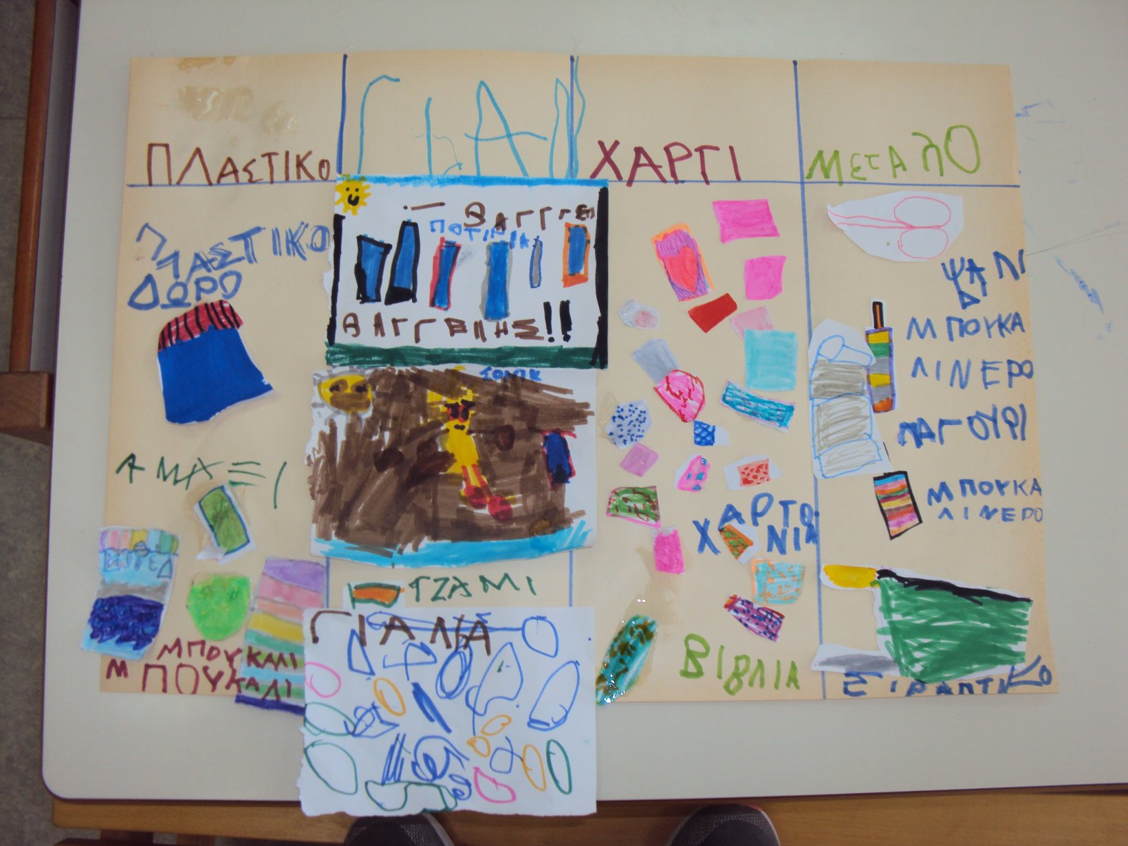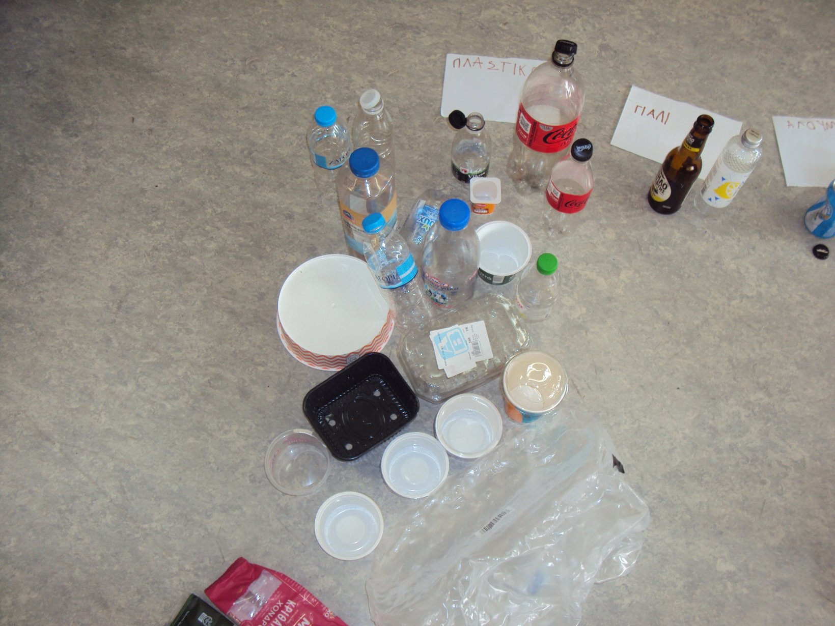 Αποφασίσαμε να συγκεντρώσουμε τα απορρίμματα που μπορούμε να ανακυκλώσουμε και τα ομαδοποιήσαμε σε χάρτινα, πλαστικά ,γυάλινα και αλουμινένια.