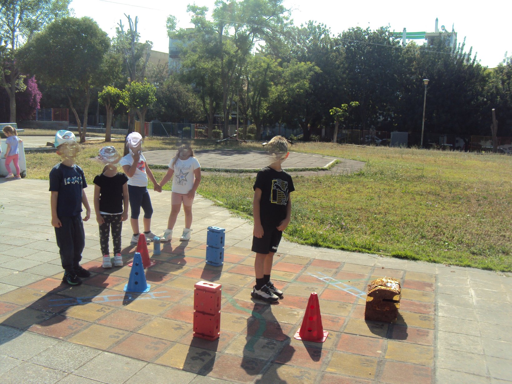 Συνεχίζοντας την επεξεργασία του τελευταίου εργαστηρίου Δεξιοτήτων τα παιδιά μας ,ανά ομάδες,έπαιξαν ένα διαφορετικό κυνήγι θησαυρού.Ο “κυνηγός” κάθε φορά του θησαυρού δεν χρειάστηκε χάρτη.Τα παιδιά της κάθε ομάδας τον καθοδηγούσαν με ποιο τρόπο θα κατευθυνθεί προς τον θησαυρό.Το παιχνίδι δυσκόλεψε η παρουσία “εμποδίων” που θα έπρεπε οι εκάστοτε καθοδηγητές να υπολογίσουν.Ήταν μια πολύ διαφορετική δραστηριότητα!!