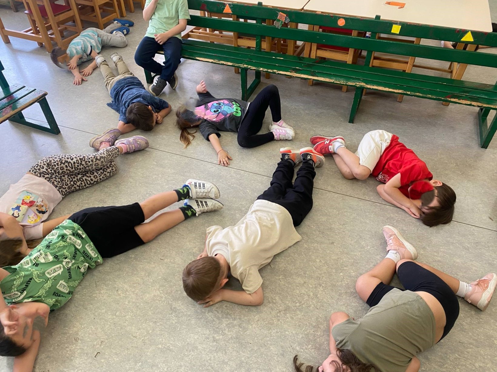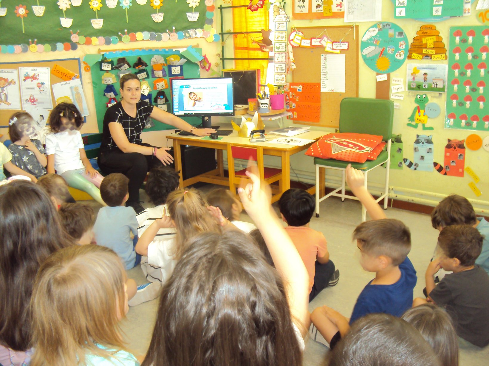 Μπήκαμε στη θέση των ζώων. Με μουσική υπόκρουση γίναμε ζώα της θάλασσας που ενώ ψάχνουμε να φάμε, αντί για τσούχτρες τρώμε πλαστικές σακούλες. Στη συνέχεια γίναμε ζώα του δάσους που ενώ ψάχνουμε για τροφή , το δάσος πιάνει φωτιά και τρέχουμε να σωθούμε ή γίναμε πουλιά που αντί για σκουληκάκια  βρίσκουμε μόνο σκουπίδια. Γίναμε ζώα που πέφτουν σε χειμερία νάρκη και οι άνθρωποι με την φασαρία που κάνουν μας ξυπνούν. Στο τέλος γίναμε παιδιά που θέλουν να σώσουν το περιβάλλον και τα ζώα. Μαζεύουμε σκουπίδια, σπρώχνουμε τα αυτοκίνητα μακριά από τα σπίτια των ζώων, σβήνουμε φωτιές, κάνουμε δεντροφύτευση κλπ.