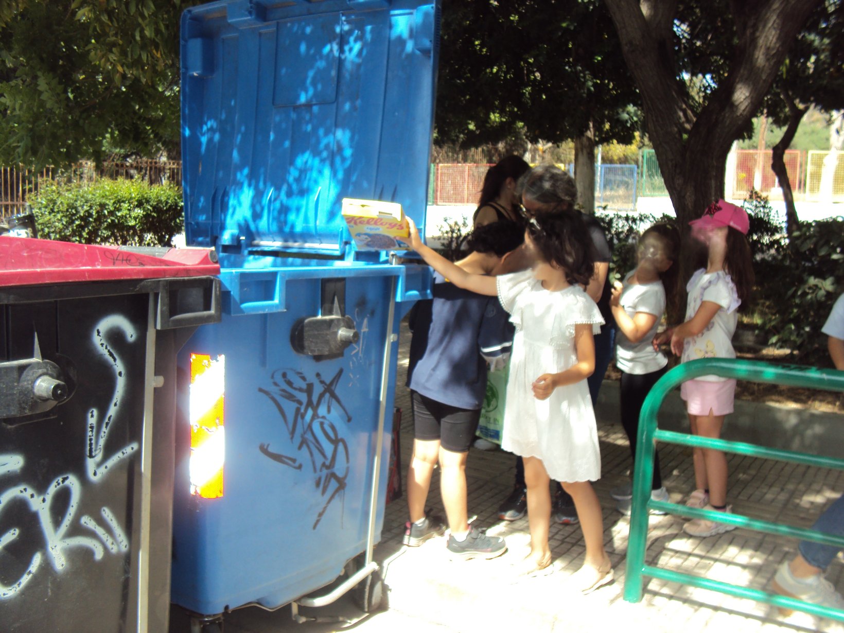 Τελειώνοντας την επεξεργασία του τελευταίου προγράμματος των εργαστηρίων δεξιοτήτων της χρονιάς πετάξαμε τα μη χρησιμοποιημένα ανακυκλώσιμα υλικά στον μπλε κάδο έξω από το νηπιαγωγείο μας.