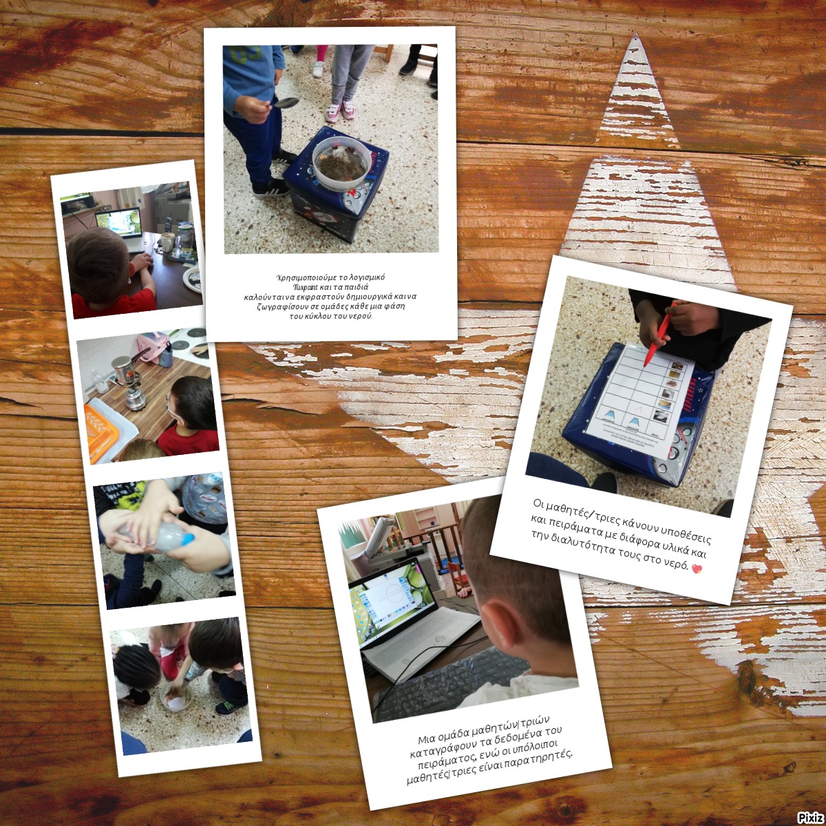 «STEM και Εκπαιδευτική Ρομποτική μέσα από τον Κύκλο του Νερού και την Υδροδυναμική».Μέσα από διαθεματικές, δημιουργικές και πειραματικές δραστηριότητες, τα παιδιά ήρθαν σε επαφή με έννοιες της επιστήμης, των μαθηματικών, της τεχνολογίας και της μηχανικής, μαθαίνοντας για τον κύκλο του νερού και τις φυσικές του ιδιότητες.Άκουσαν το παραμύθι «Οι σταγόνες ταξιδεύουν» της Τριανταφυλλιάς Μακούλη.Απόλαυσαν μουσικά αποσπάσματα όπως «Οι σταγόνες της βροχής» του Σταμάτη Σπανουδάκη. Ζωγράφισαν το ποίημα «Από πού ήρθες ποταμάκι» του Ζαχαρία Παπαντωνίου.Παρακολούθησαν βίντεο για τον κύκλο του νερού και τις καταστάσεις της ύλης και κατανόησαν τις αλλαγές κατάστασης του νερού (στερεό, υγρό, αέριο).Δημιούργησαν παζλ και μακέτα που απεικονίζουν τον κύκλο του νερού,αντίστοιχα.Χρησιμοποίησαν το λογισμικό Tux Paint για να αποτυπώσουν εικαστικά τις φάσεις του κύκλου.