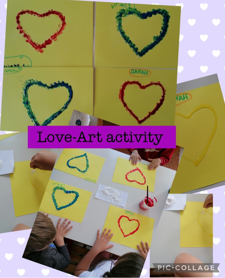 Τα παιδιά ζωγραφίζουν την Αγάπη με αλάτι και χρώμα.