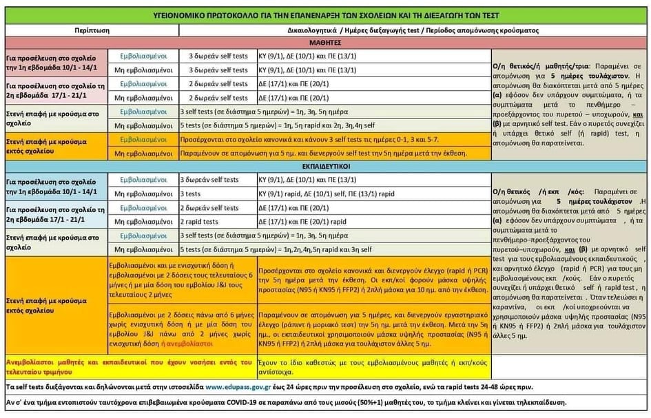 Κάντε σήμερα Κυριακή 09/01/2022 όλοι τα self test στα παιδιά και δηλώστε τα στην πλατφόρμα edupass.gov.gr.
