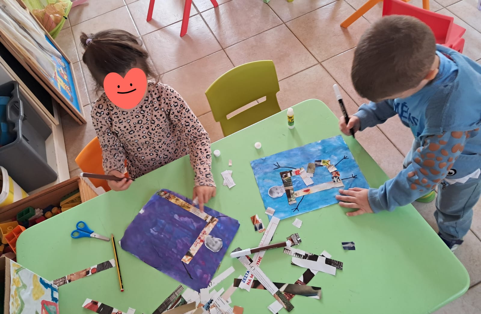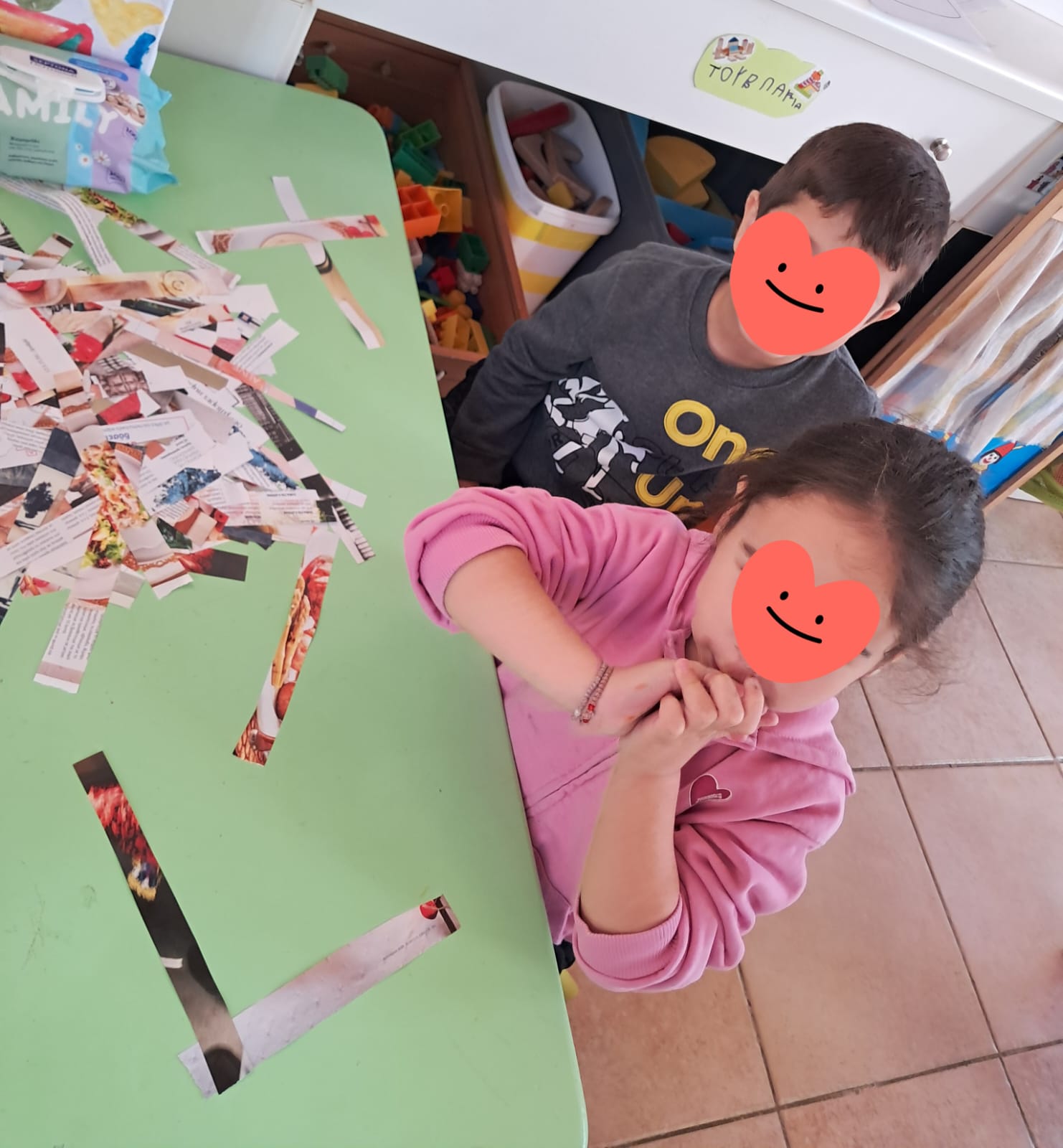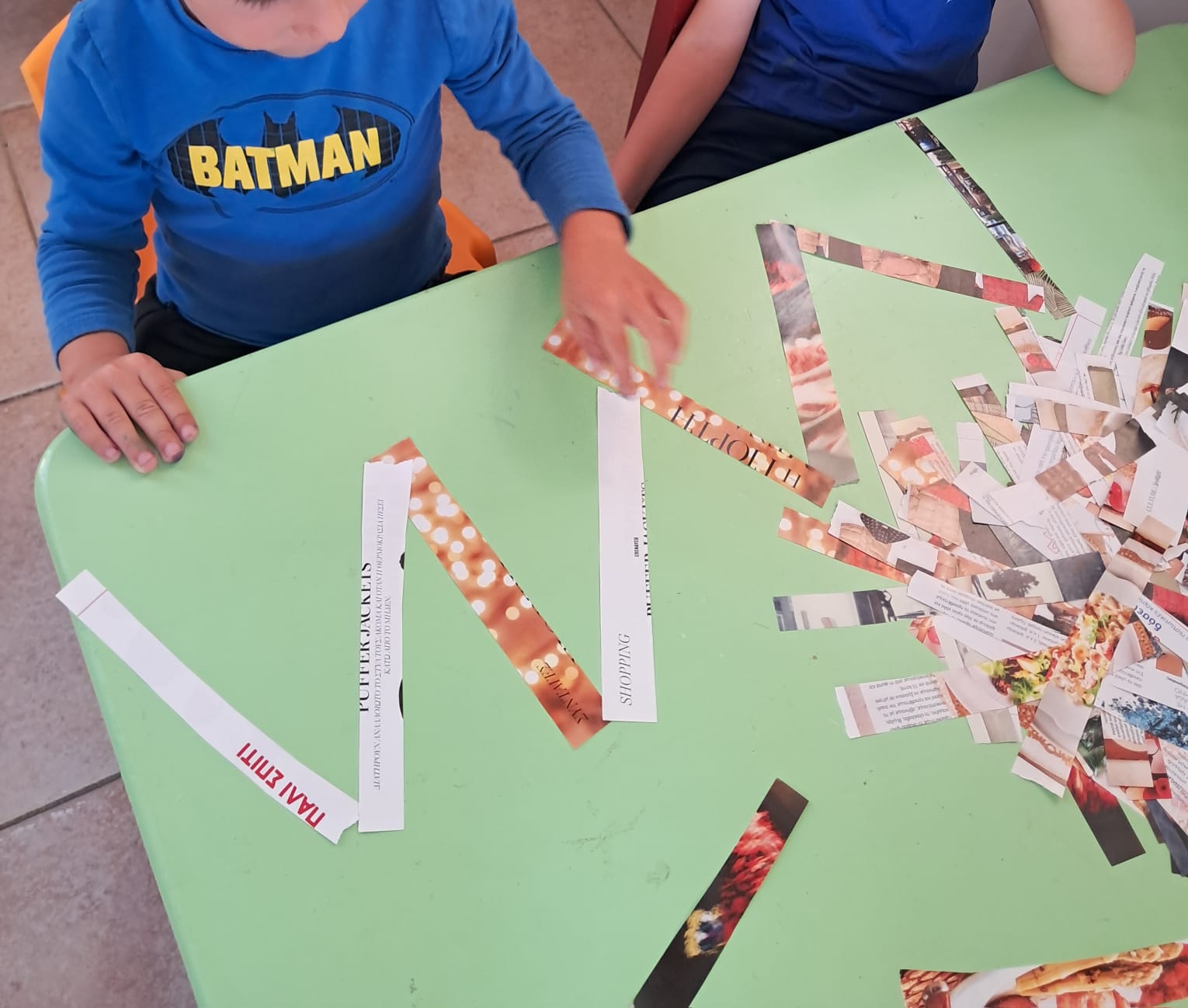 Φτιάξαμε κολάζ με το αρχικό μας, από τις λωρίδες του περιοδικού και το κάναμε ανθρωπάκι…ο εαυτός μας!!!