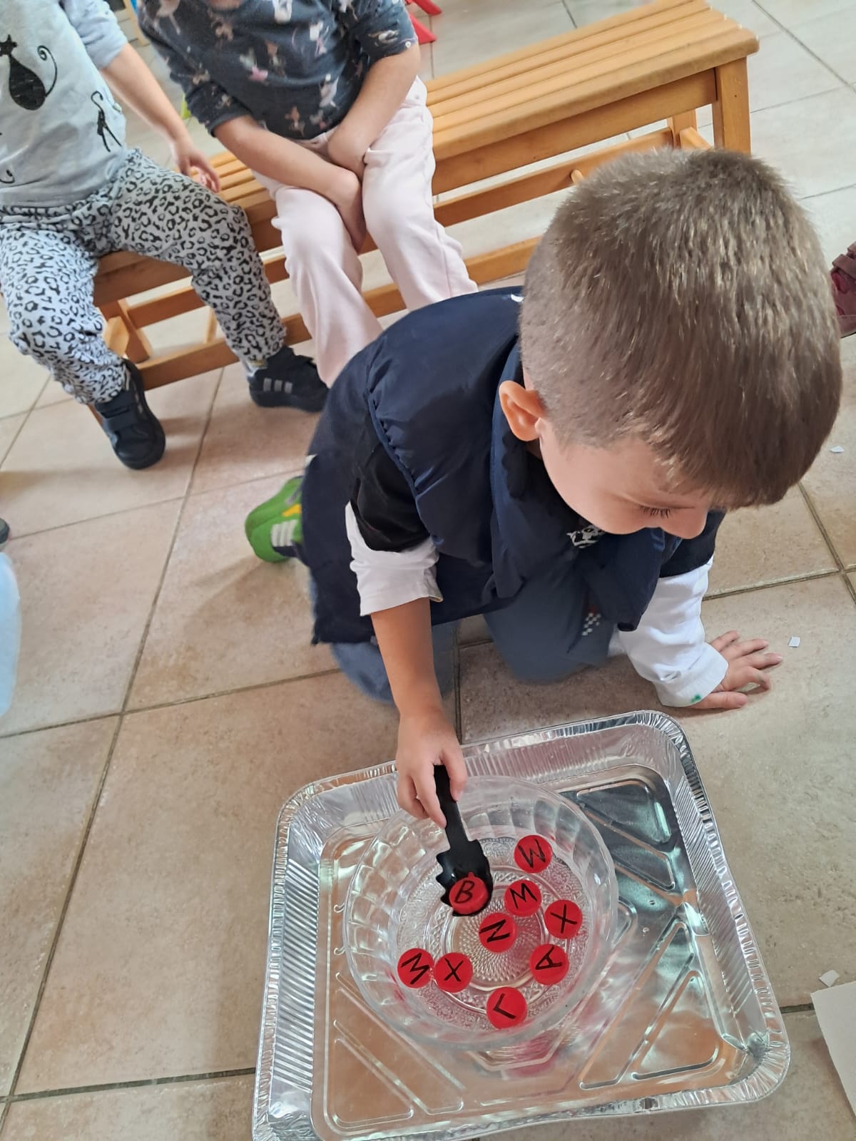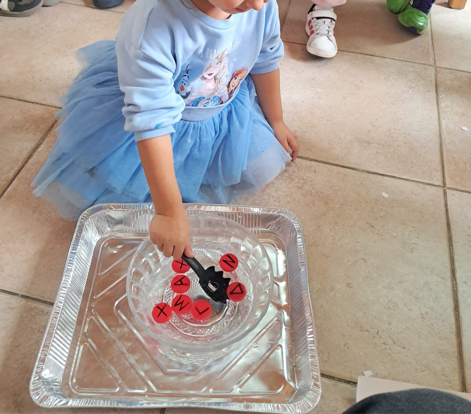 Ψαρέψαμε τα γραμματοκαπάκια με το αρχικό μας που κολυμπούσαν στο νερό!!!