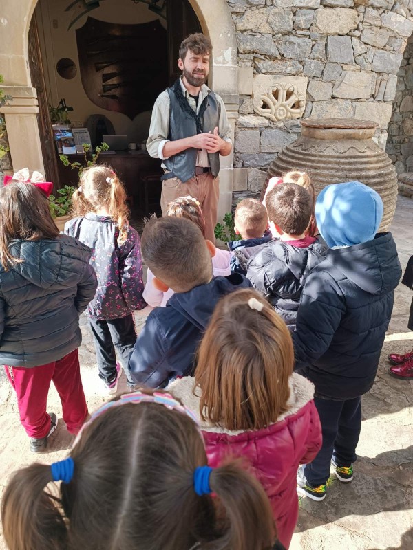 Την Παρασκευή 13 Δεκεμβρίου 2024 πραγματοποιήσαμε μία εκπαιδευτική εκδρομή στο παραδοσιακό χωριό “Αρόλιθος” όπου συμμετείχαμε στο εκπαιδευτικό πρόγραμμα: “Βίωσε-Παίξε-Μάθε”. Ξεκινώντας την επίσκεψή μας καθήσαμε στην ταβέρνα του χωριού για να φάμε το δεκατιανό μας! Εκεί μας περίμενε το “Μανολιό” ένα παιδί του χωριού, που μας ζήτησε να τον βοηθήσουμε να βρει διάφορα φρούτα, μία λεκανίδα, ένα λαδικό και πρασινάδες για τις πάει στην “κερά” του!