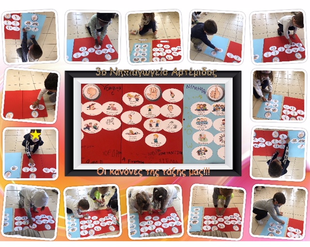 Φτιάξαμε το συμβόλαιο της τάξης αφού συμφωνήσαμε τι επιτρέπεται, τι δεν επιτρέπεται και τι πρέπει να ξανά σκεφτόμαστε. Στο τέλος υπογράψαμε με το όνομα του ο καθένας και έχουμε την υποχρέωση να το τηρούμε. Το συμβόλαιο υπάρχει στην τάξη μας για να μας θυμίζει τους κανόνες συμπεριφοράς σε περίπτωση που τους ξεχνάμε.