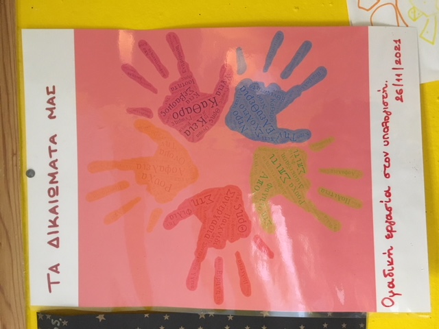 Ανασκόπηση όλων των εργαστηρίων και των δικαιωμάτων του ανθρώπου. Φτιάξαμε στον υπολογιστή μια αφίσα με τη βοήθεια του WordArt, που αναγράφει όλα τα δικαιώματα που αναφέραμε παραπάνω, η οποία θα υπάρχει στην τάξη μας και θα μας τα θυμίζει καθ’ όλη τη διάρκεια της χρόνιας!