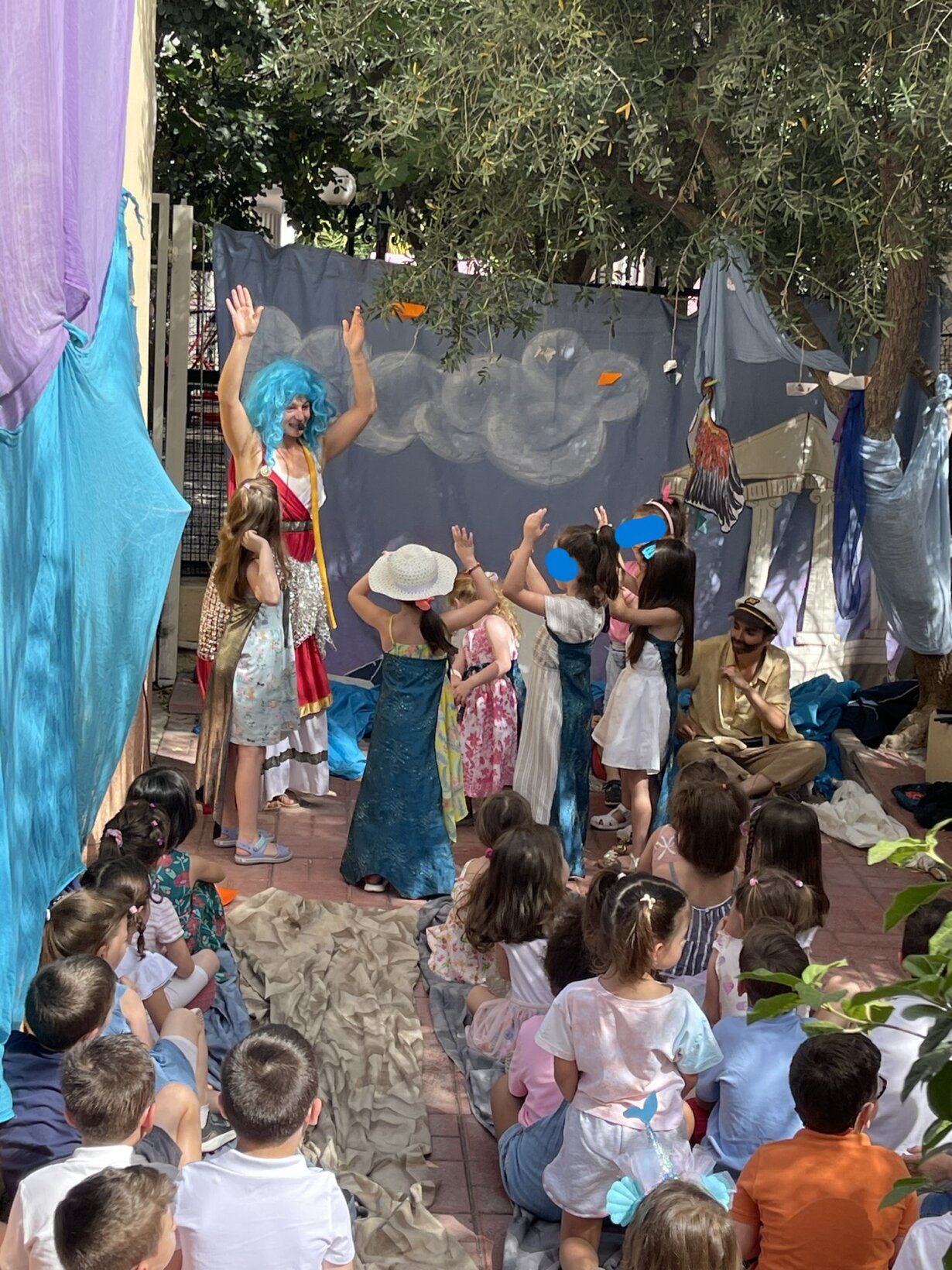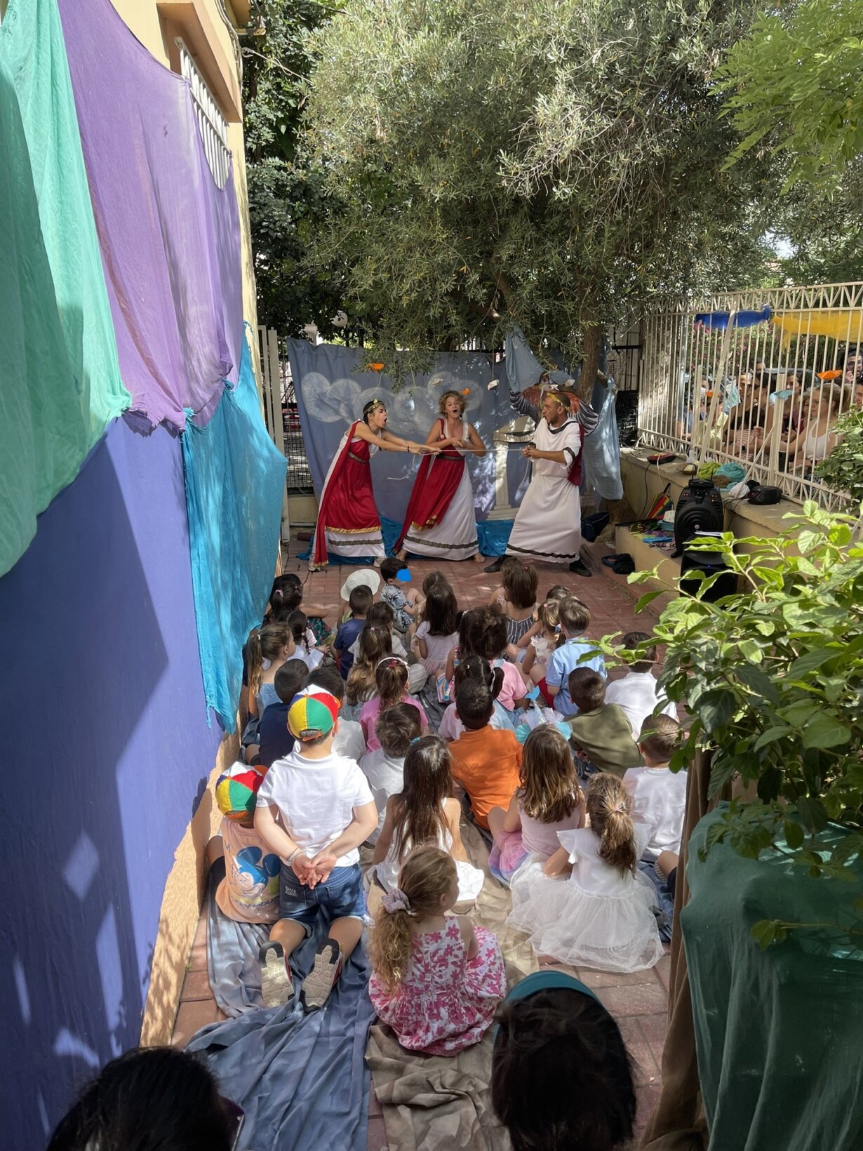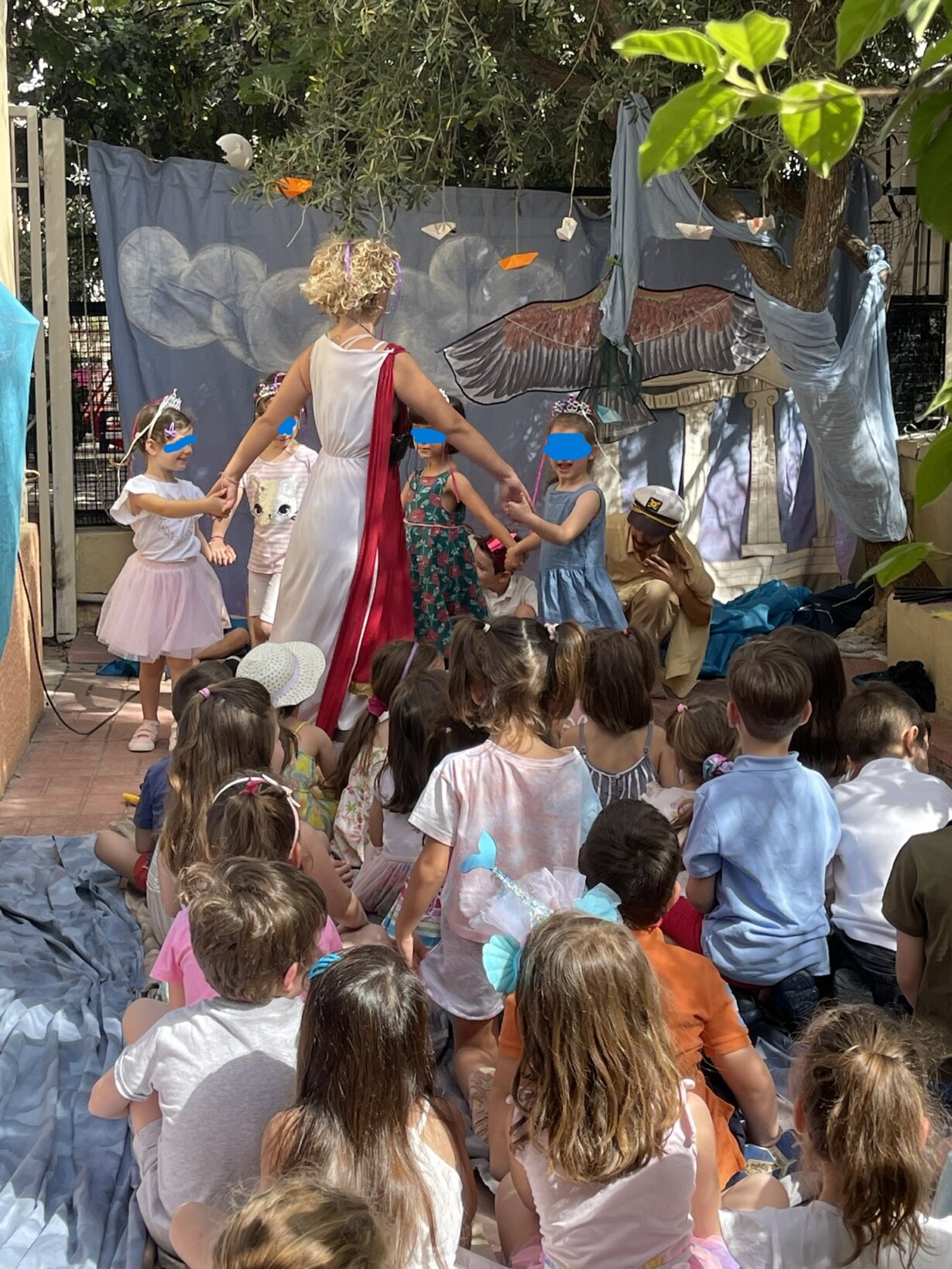 Με χαρά υποδεχτήκαμε, μικροί και μεγάλοι, την ομάδα “Συν-Κίνησις” που οργάνωσε ένα “ταξίδι” στον κόσμο των θεών του Ολύμπου, στη μικρή αυλή μας. Μέσα από τις περιπέτειες των ηρώων, τα παιδιά πήραν ρόλους και βοήθησαν τους θεούς να διαλέξουν ποιο μπλε είναι το καλύτερο; Του ουρανού ή της θάλασσας; Φυσικά η απάντηση βρίσκεται στην ενότητα, τη συνεργασία και την αλληλεγγύη, έννοιες που μας απασχόλησαν όλη τη χρονιά και είμαστε πολύ περήφανοι που τα παιδιά μας γνωρίζουν και τις κάνουν πράξη!