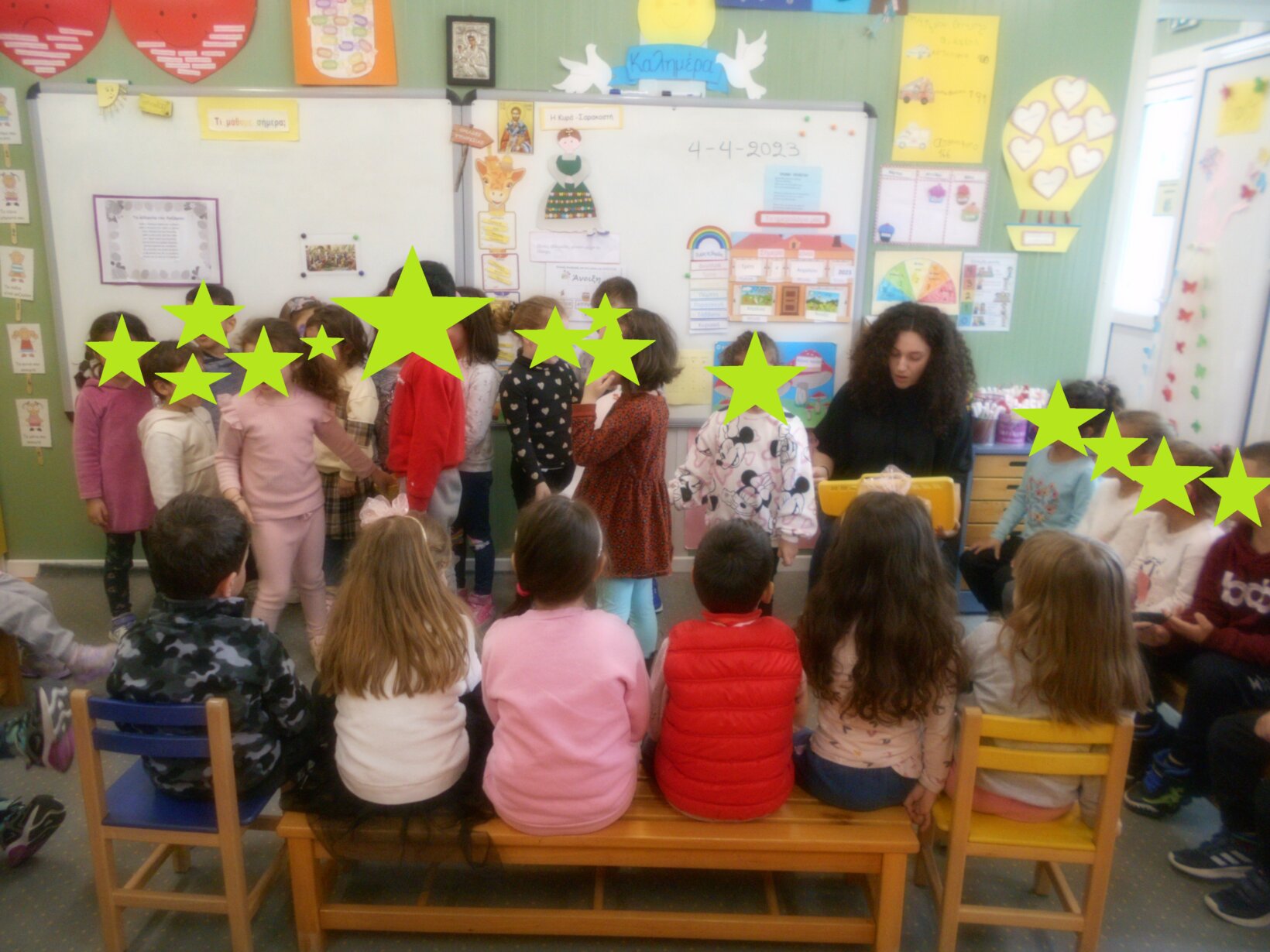 Εκεί οι μαθητές του Νηπιαγωγείου απηύθυναν ερωτήσεις – απορίες στους περσινούς συμμαθητές τους και νυν μαθητές της Ά δημοτικού…