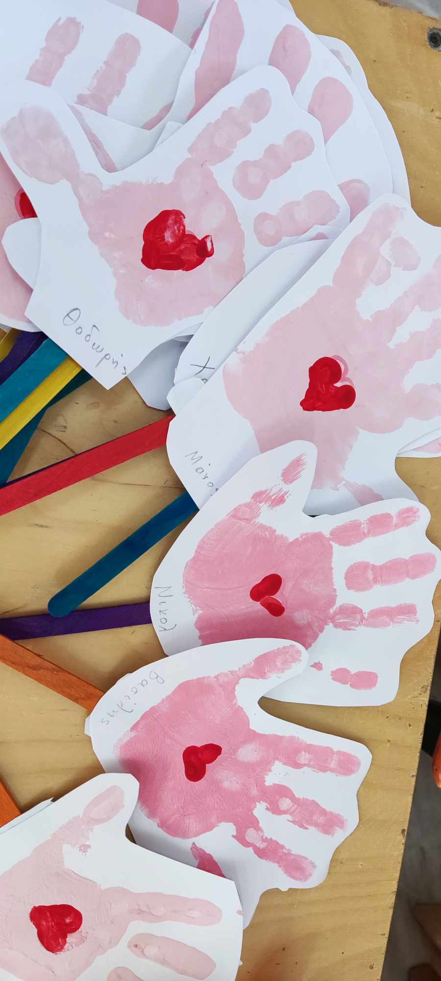 γι αυτό κάναμε το χεράκι μας ένα αποτύπωμα με το μήνυμα του Τσεστερ και το πήραμε στο σπίτι μας ώστε η μαμά να μας δίνει το μαγικό φιλάκι!