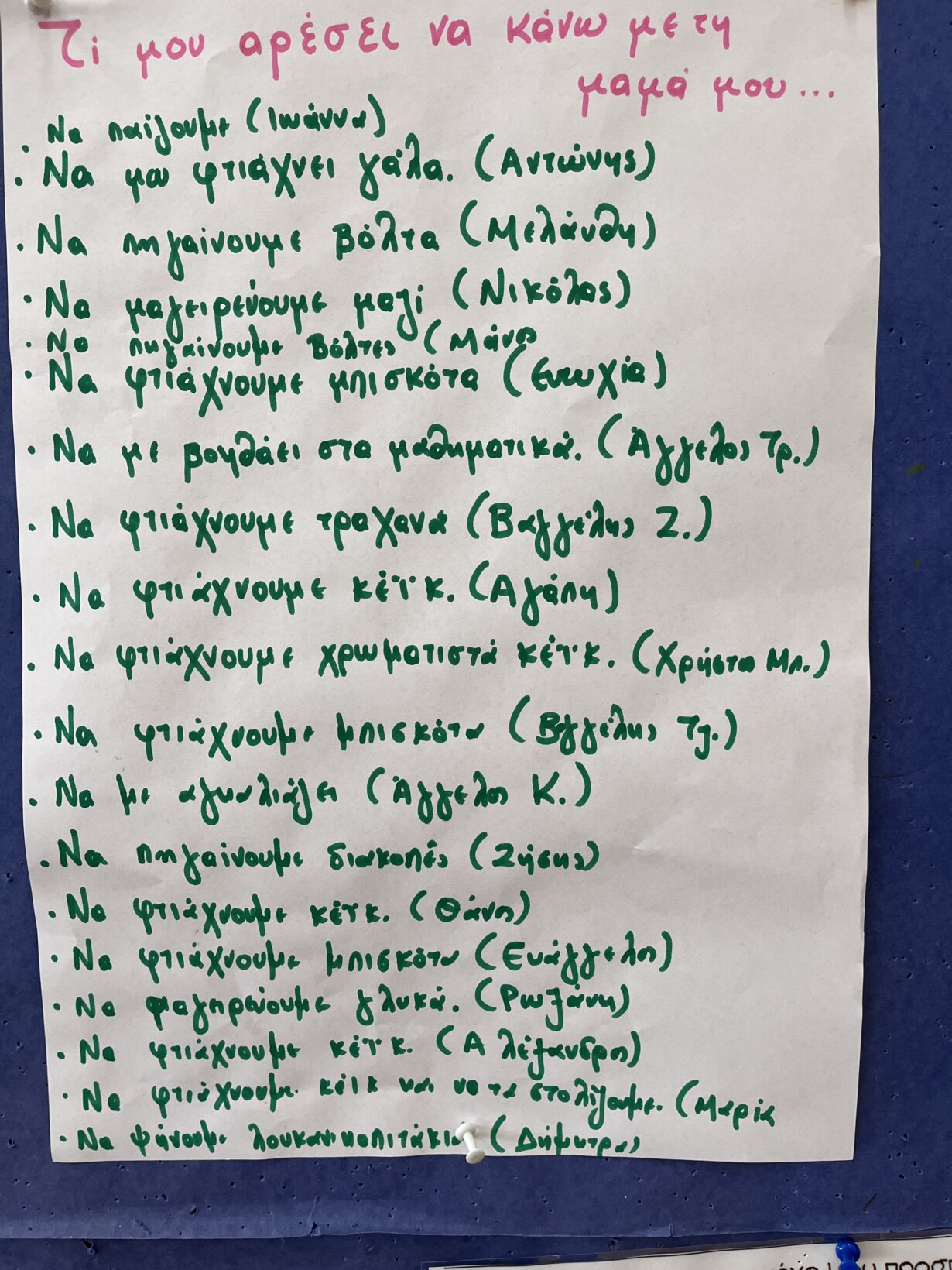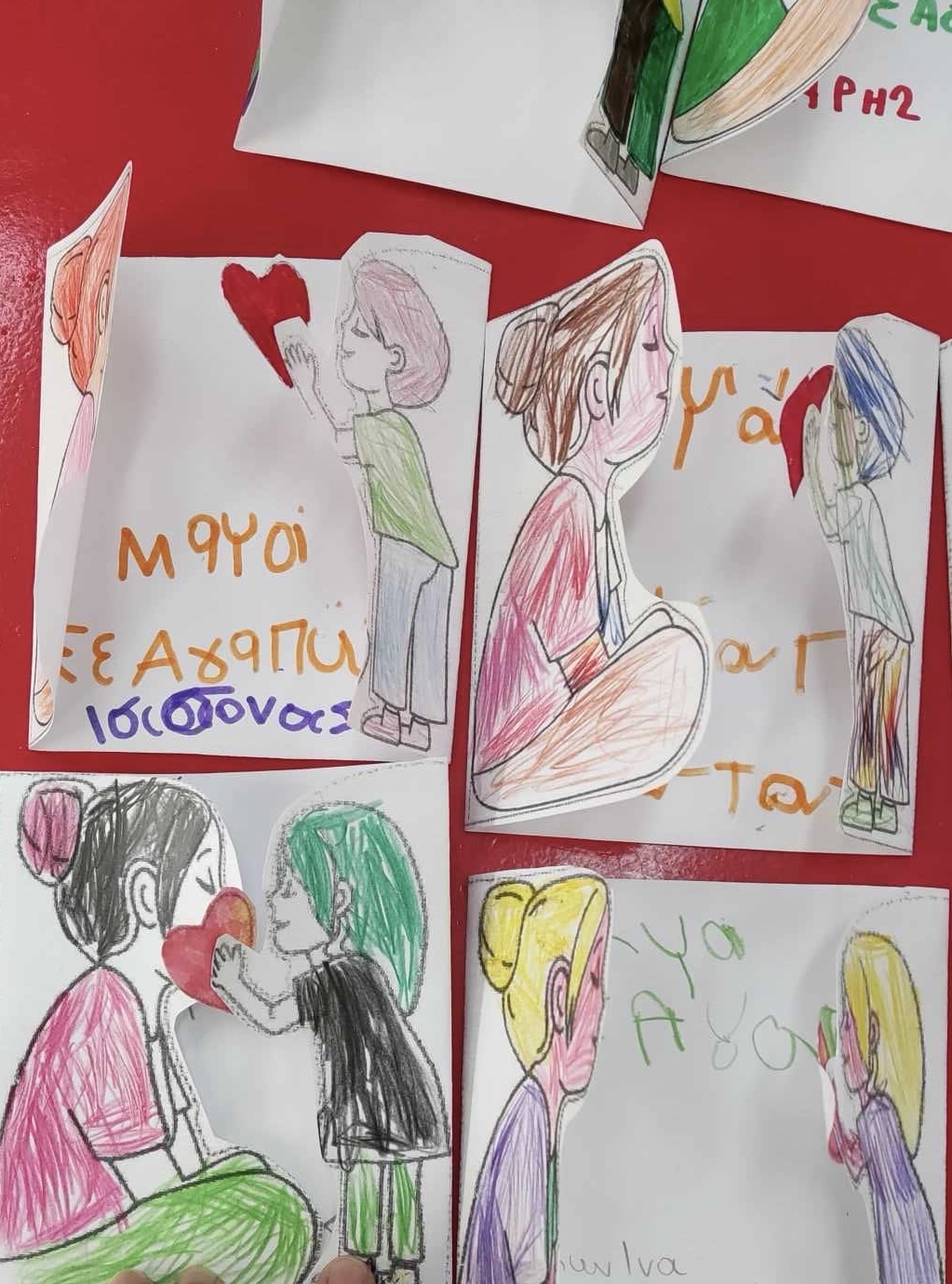 Τέλος φτιάξαμε κάρτες για τις μητέρες μας και γράψαμε κάτι που φαίνεται απλό αλλά είναι το πιο βαθύ και ουσιαστικό: Μαμα σε αγαπώ!