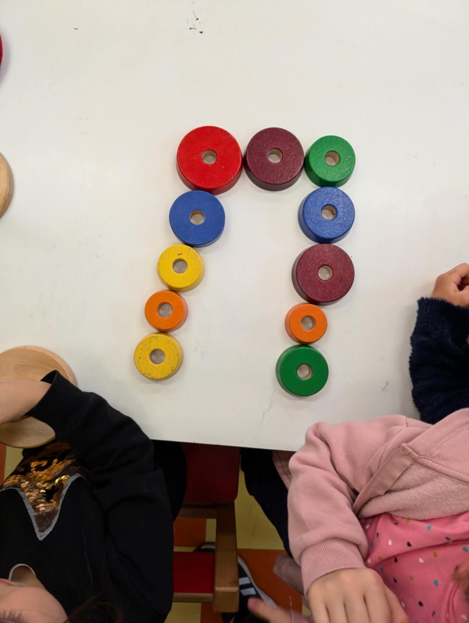 Αρχικά, ανακαλύψαμε σχήματα μέσα από την τάξη και τα παιχνίδια μας, στην συνέχεια, δημιουργήσαμε τα σχήματα με πλαστελίνη: