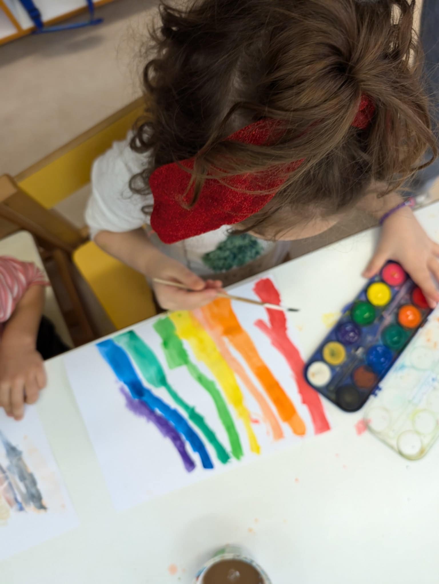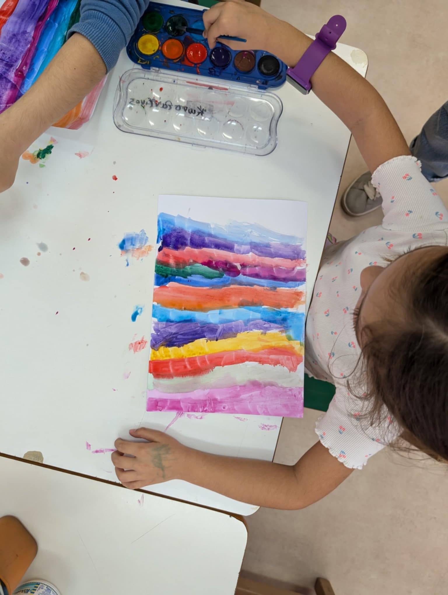 Στην συνέχεια, ασχοληθήκαμε με τα χρώματα και αφού μιλήσαμε για την μίξη των χρωμάτων , πειραματιστήκαμε για να δούμε τα αποτελέσματα: