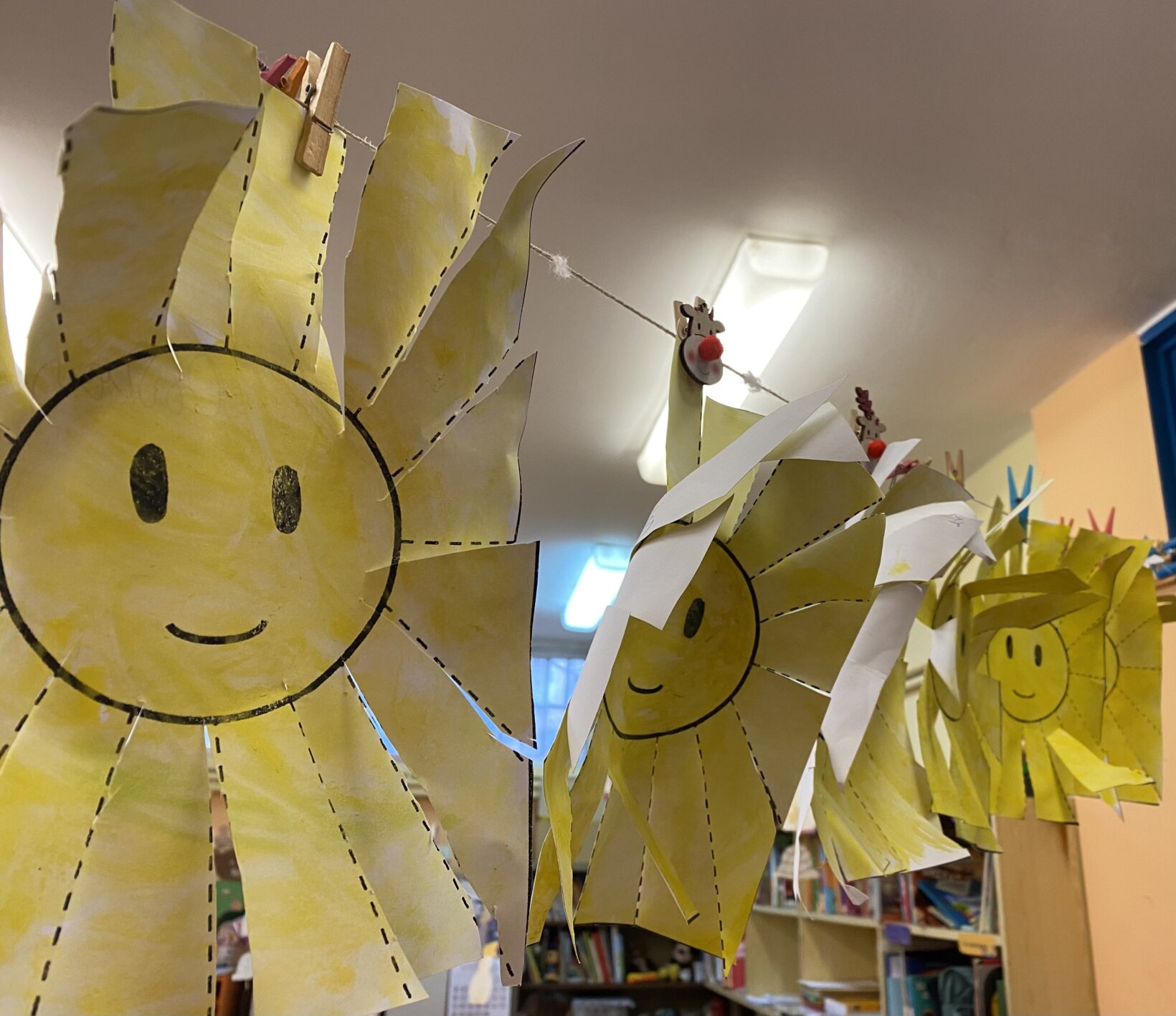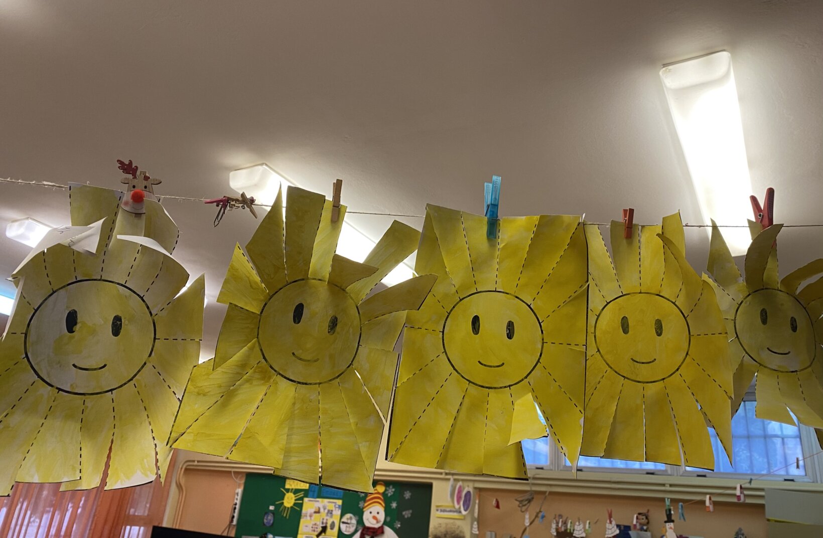 Δημιουργήσαμε τους δικούς μας ήλιους για να φωτίζουν την τάξη μας , μαζί με το γράμμα Η,η