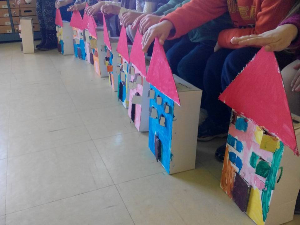 και … φτιάξαμε τα αγαπημένα μας σπιτάκια της κάθε οικογένειας. Μεταμορφώσαμε με άλλα λόγια άδεια κουτιά παπουτσιών σε σπιτάκια. Τα παιδιά τα χρωμάτισαν και η νηπιαγωγός άνοιξε απλώς τόσα παράθυρα όσα και τα μέλη της κάθε οικογένειας, όπου σε κάθε παράθυρο στερεώθηκε η φωτογραφία ενός προσώπου της οικογένειας!!! Παίξαμε με τα σπιτάκια πολύ, ασχοληθήκαμε πολύ… και τέλος τα παιδιά τα πήραν στο σπίτι ως ενθύμιο ΚΑΤΕΝΘΟΥΣΙΑΣΜΕΝΑ!!!