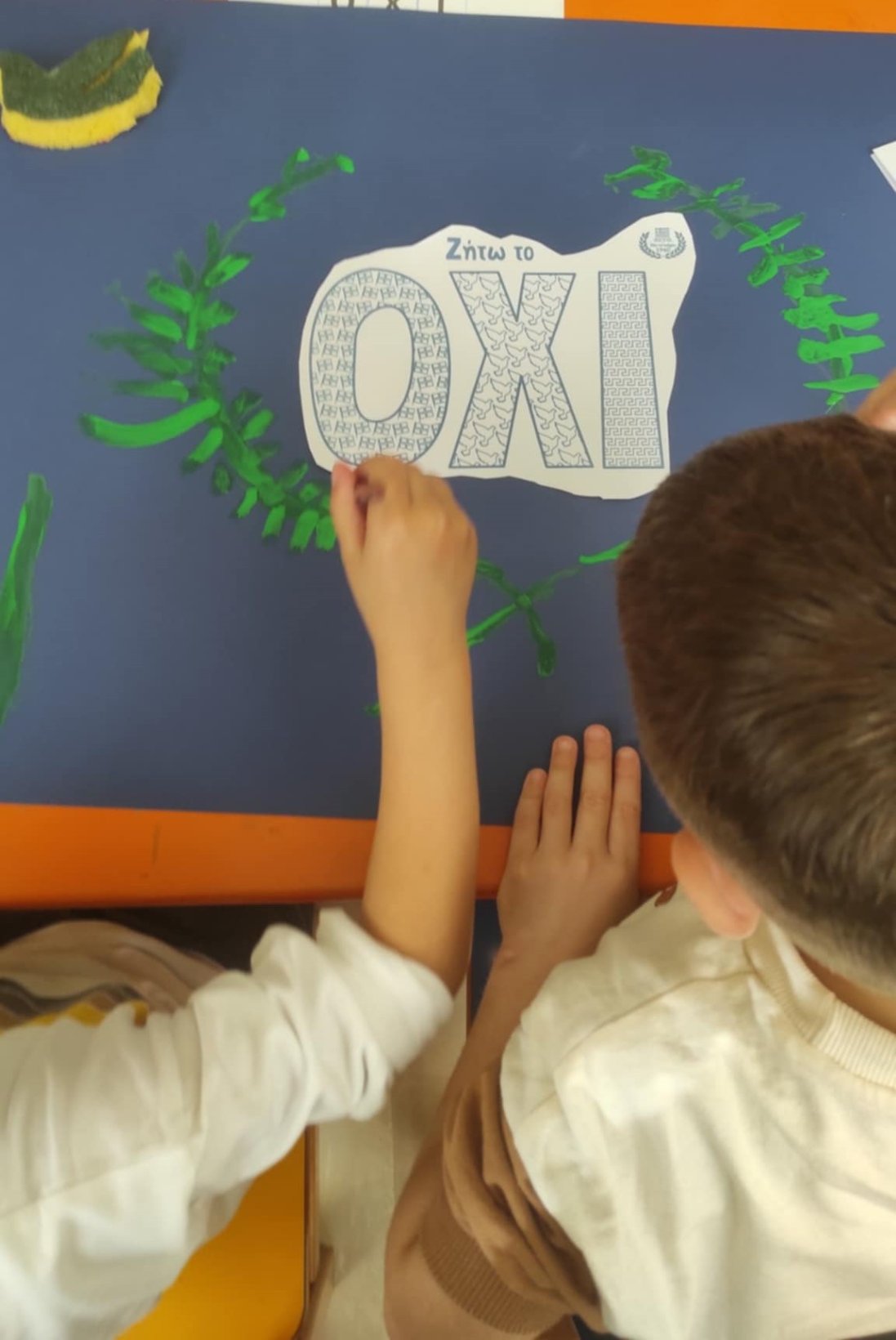 Στα πλαίσια του εορτασμού της επετείου της 28ης Οκτωβρίου 1940, τα παιδιά έμαθαν για την επέτειο, τον πατριωτισμό, και το «όχι» του 1940 μέσω αφηγήσεων, τραγουδιών, και σχετικής εικονογραφίας.