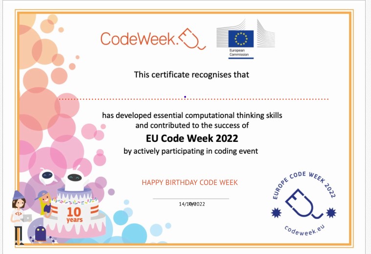 Πιστοποιητικά Συμμετοχής στην Ευρωπαϊκή Εβδομάδα Κώδικα 2022
