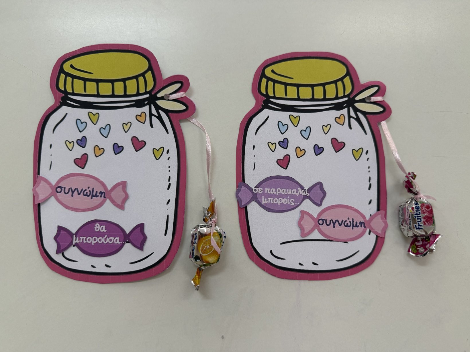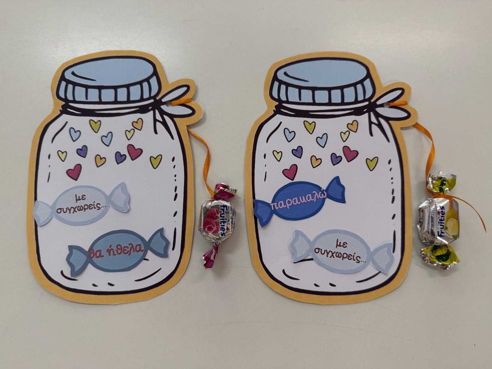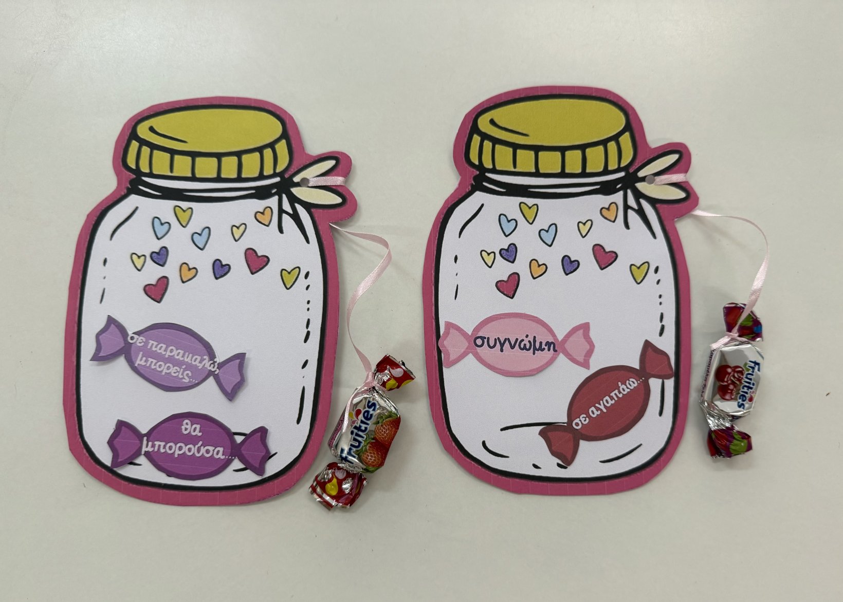 Κάθε παιδί διάλεξε ένα μικρό βάζο, το στόλισε με ευγενικές λέξεις και μέσα του έβαλε και μια γλυκιά καραμέλα! 🍬