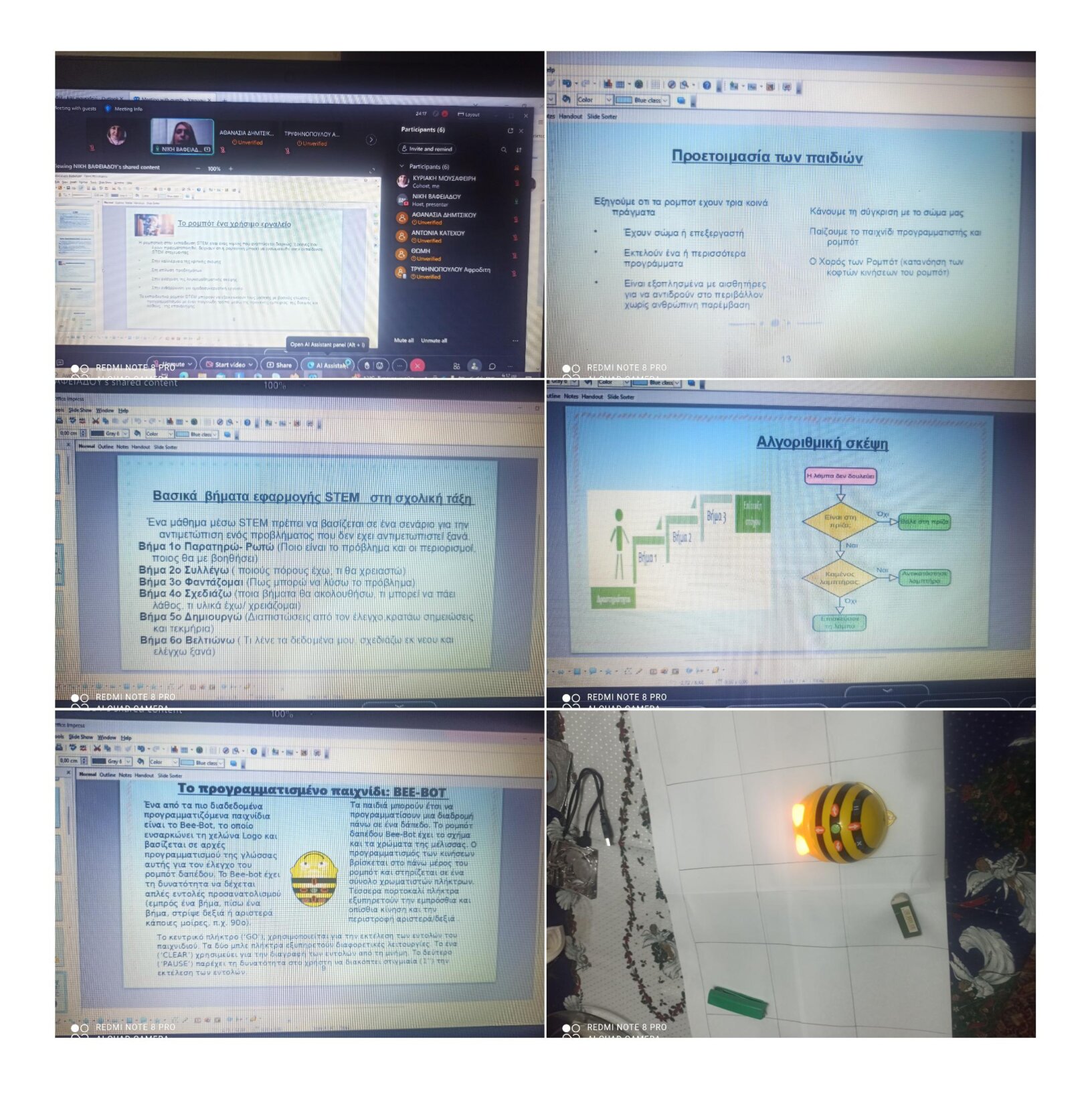Αφού λοιπόν γνωρίσαμε τη Beebot και τις ξαδέλφες της, μάθαμε για τα ρομπότ, τι είναι, από τι είναι φτιαγμένα τι μπορούν να κάνουν αλλά και πώς! Έτσι κάναμε την εισαγωγή στον κόσμο του προγραμματισμού . Αναλάβαμε ρόλους προγραμματιστή και ρομπότ, οδηγηθήκαμε στον/στην φίλο/η μας και δοκιμάσαμε τη Beebot στο πλέγμα! Τέλος διαλέξαμε φορεσιές , τη διαδρομή που θέλουμε να κάνουμε, βάλαμε τα βελάκια κατεύθυνσης, γράψαμε τον κώδικα και δώσαμε τις εντολές στη μικρή μας ρομπότ