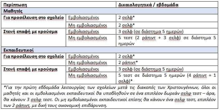 μαθητές θα διενεργούν selftest πριν από την προσέλευσή τους στο σχολείο. Το επόμενο selftest θα