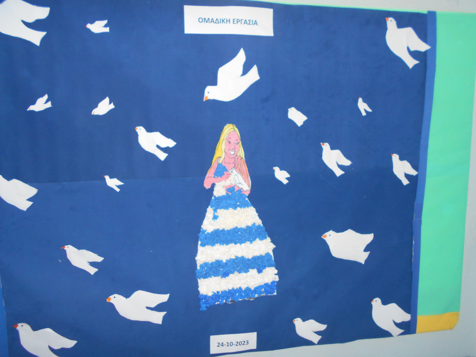Σε ομαδική κατασκευή φτιάξαμε την Ελλάδα περιτριγυρισμένη από περιστέρια.