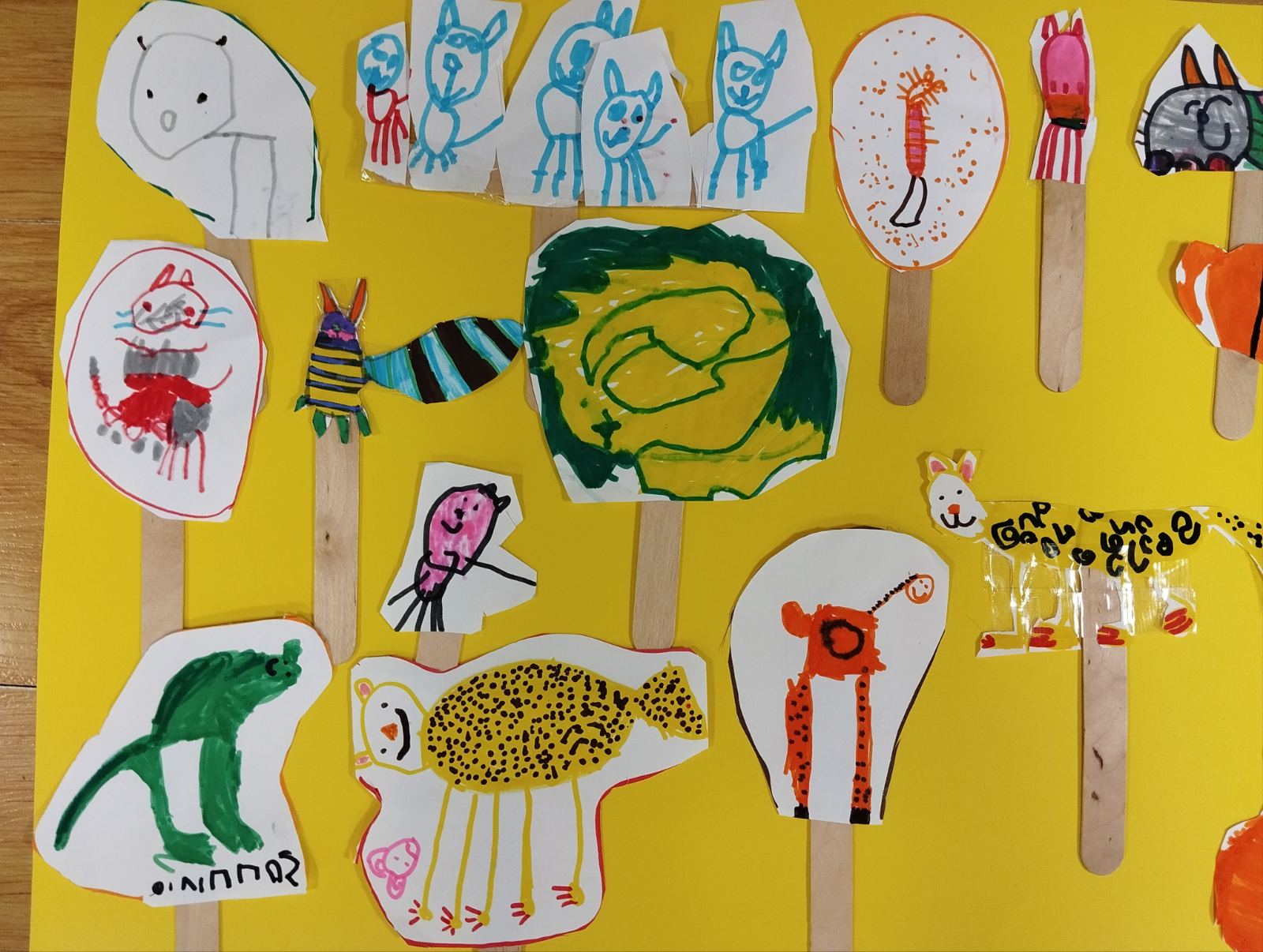 Ζωγραφίσαμε το αγαπημένο μας ζώο και αφού μπήκε σε ξυλάκι, το χρησιμοποιήσαμε για να φτιάξουμε τους δικούς μας χαρακτήρες για το κουκλοθέατρο που παίξαμε στο τέλος της ημέρας.