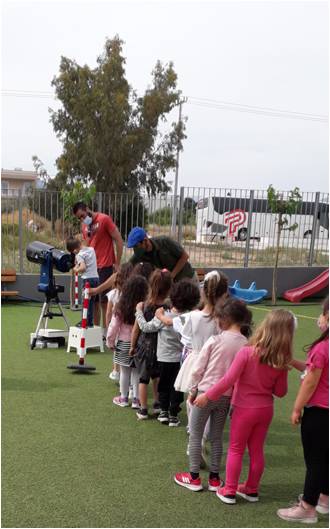 Την Παρασκευή 13 Μαίου 2022, στα πλαίσια του Εργαστηρίου Δεξιοτήτων-Stem, επισκεφτήκαμε το Πολυδύναμο Νηπιαγωγείο Κορίνθου. Στην αυλή του Νηπιαγωγείου είχε στηθεί Τηλεσκόπιο και Πλανητάριο και οι μαθητές διασκέδασαν με την εμπειρία.