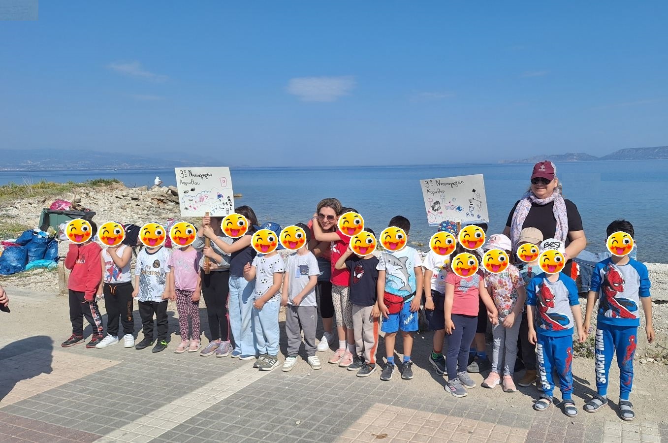 Οι μαθητές, οι εκπαιδευτικοί και οι γονείς του 3ου Νηπιαγωγείου Κορίνθου, υιοθέτησαν την ακτή στο τέλος της οδού Κολιάτσου καθαρίζοντας την από τα σκουπίδια και άλλα υλικά που ρυπαίνουν το περιβάλλον.