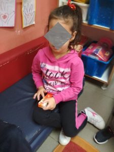 Παίξαμε τους τυφλούς, προσπαθώντας να περάσουμε διάφορα εμπόδια είτε χρησιμοποιώντας ένα ραβδί, είτε οδηγούμενοι από έναν φίλο μας.