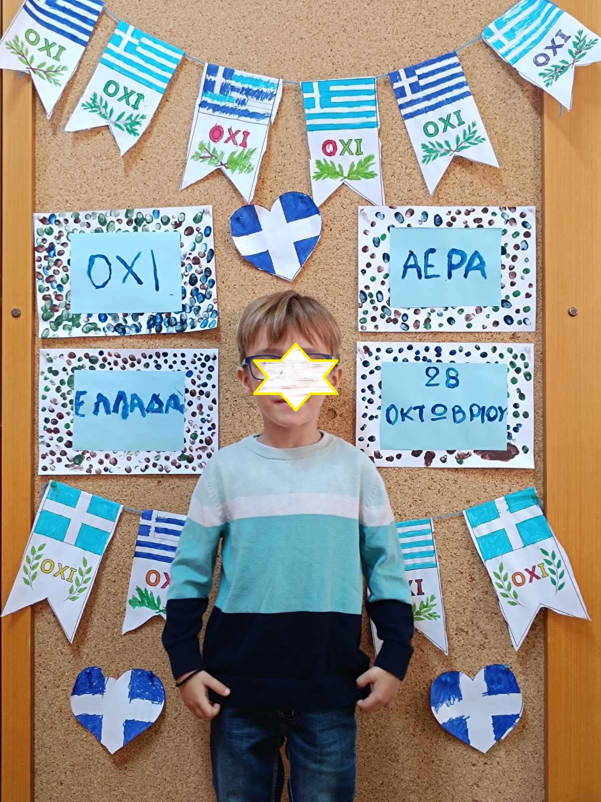Η επέτειος της 28ης Οκτωβρίου αποτελεί μέρα τιμής και υπερηφάνειας για το λαό μας, με το ιστορικό “ΟΧΙ” να φανερώνει το μεγαλείο και τη δύναμη της ψυχής του. Αξιοποιώντας ποικίλο υλικό (έντυπο, ψηφιακό, αρχειακό) θαυμάσαμε τον πατριωτισμό και την ανδρεία όσων τότε πολέμησαν, ενώ παράλληλα εκτιμήσαμε το “δώρο” της ειρήνης που σήμερα απολαμβάνουμε. Την Παρασκευή 25 Οκτωβρίου 2024, που πραγματοποιήθηκε η γιορτούλα μας στο σχολείο, τα παιδιά είπαν ποιήματα και τραγούδησαν τραγούδια της Σοφίας Βέμπο και τον εθνικό μας ύμνο. Τέλος παίξαμε κουκλοθέατρο με τους ήρωες της γιορτής.
