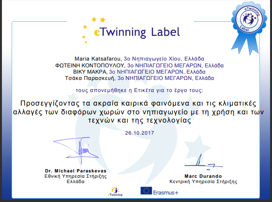 Το 2017 τιμηθήκαμε με την ετικέτα ποιότητας για το έργο μας που σχετίζεται με τα καιρικά φαινόμενα.