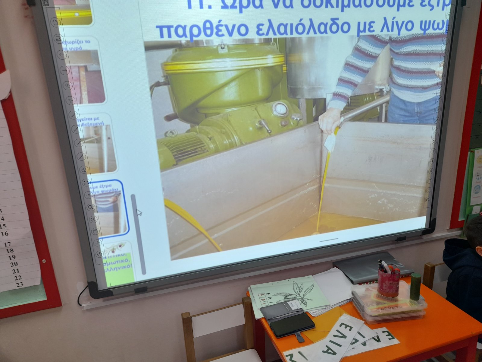 Γνώρισαν την διαδικασία του μαζέματος των ελιών και την διαδικασία παραγωγής του λαδιού μέσα από παρακολούθηση βίντεο και εικόνων.