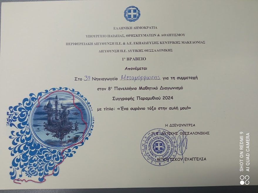 Ευχαριστούμε πολύ το Δήμο Μεταμόρφωσης για τα χρώματα, τα υλικά βαψίματος και το χώμα!