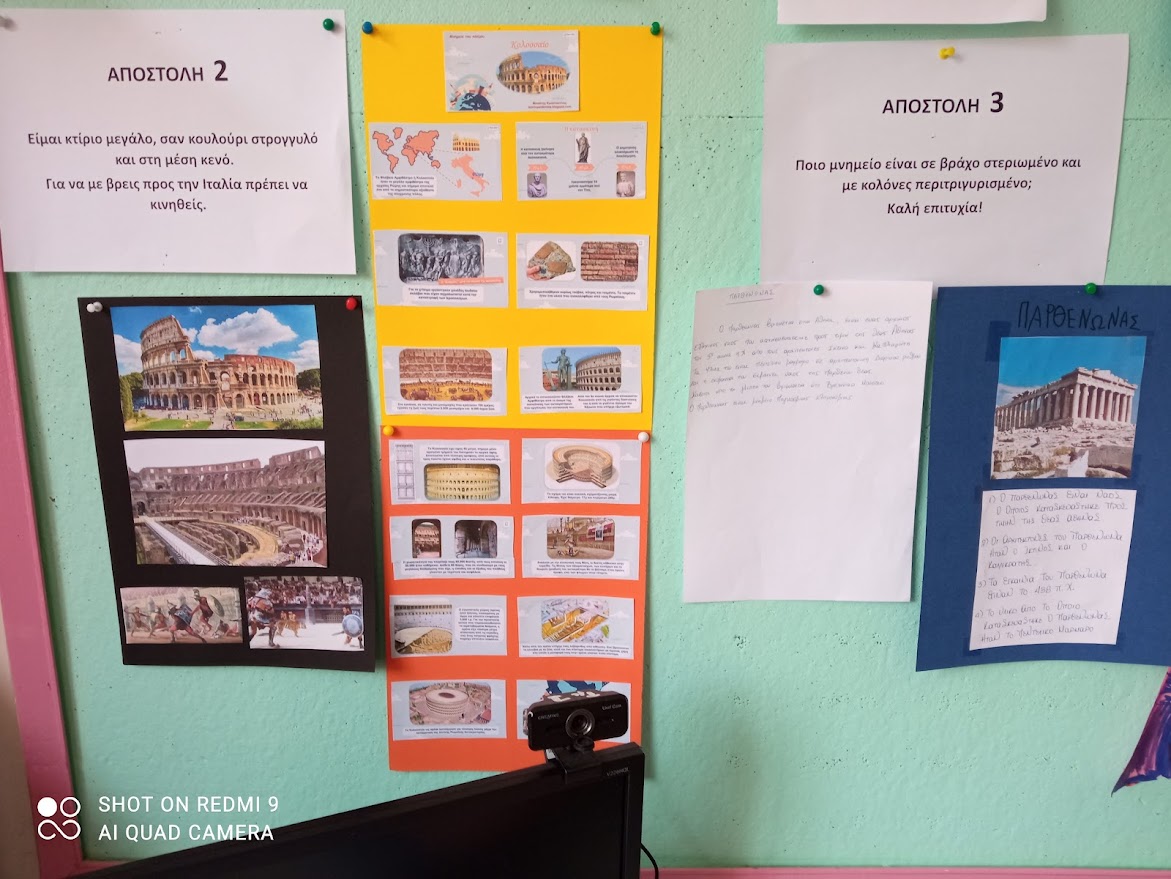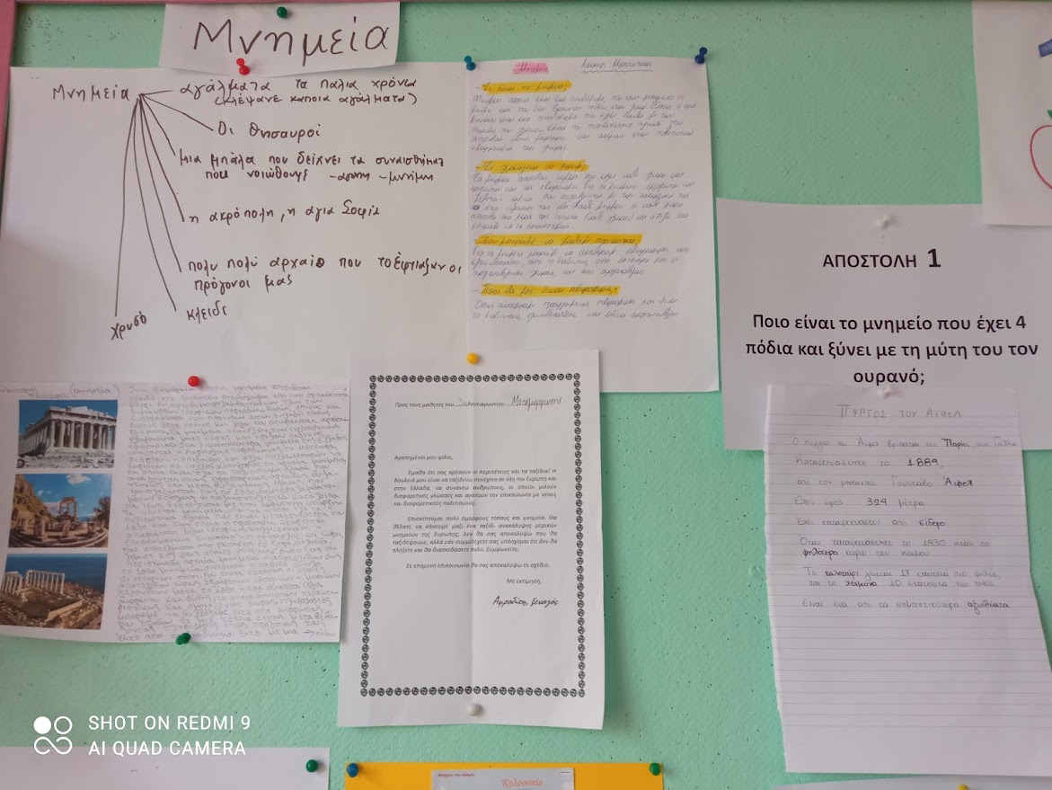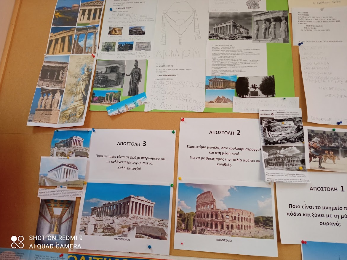 Οι μαθητές κλήθηκαν μαζι με τους γονείς τους να αναζητήσουν πληροφορίες για το τι είναι μνημεία, να τις αναρτήσουν στο padlet του εργαστηρίου και να τις φέρουν στην τάξη να μας τις παρουσιάσουν.