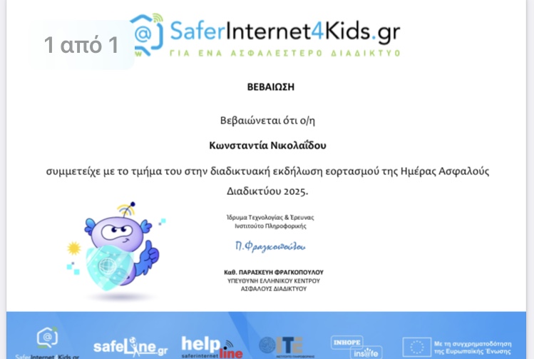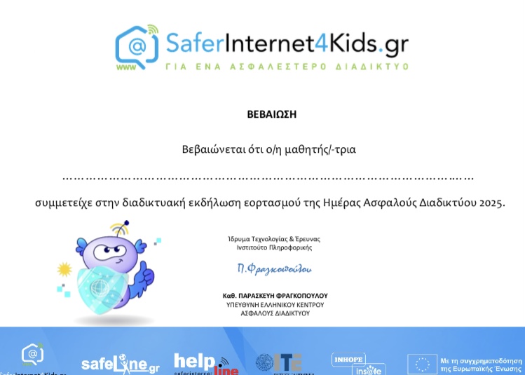 θα θέλαμε να σας ευχαριστήσουμε θερμά για τη συμβολή σας στον εορτασμό της Ημέρας Ασφαλούς Διαδικτύου 2025.