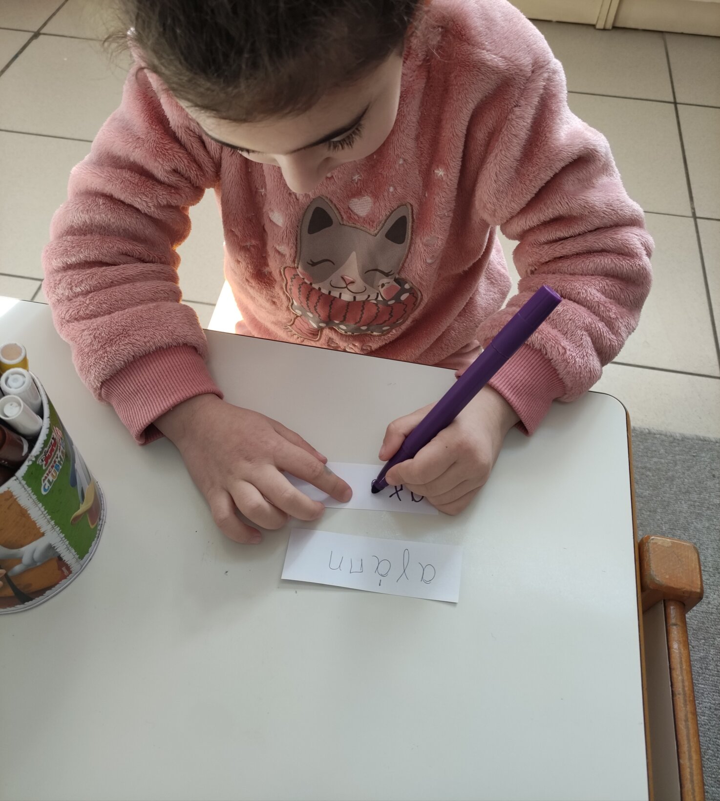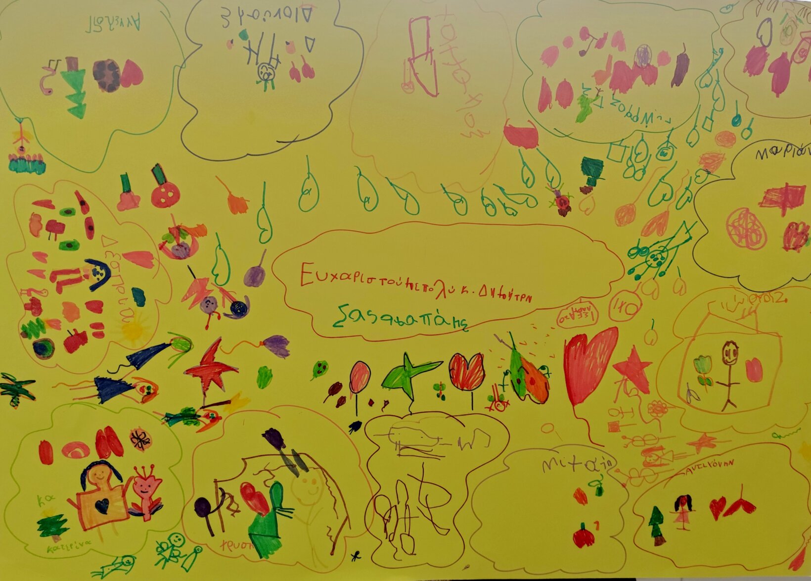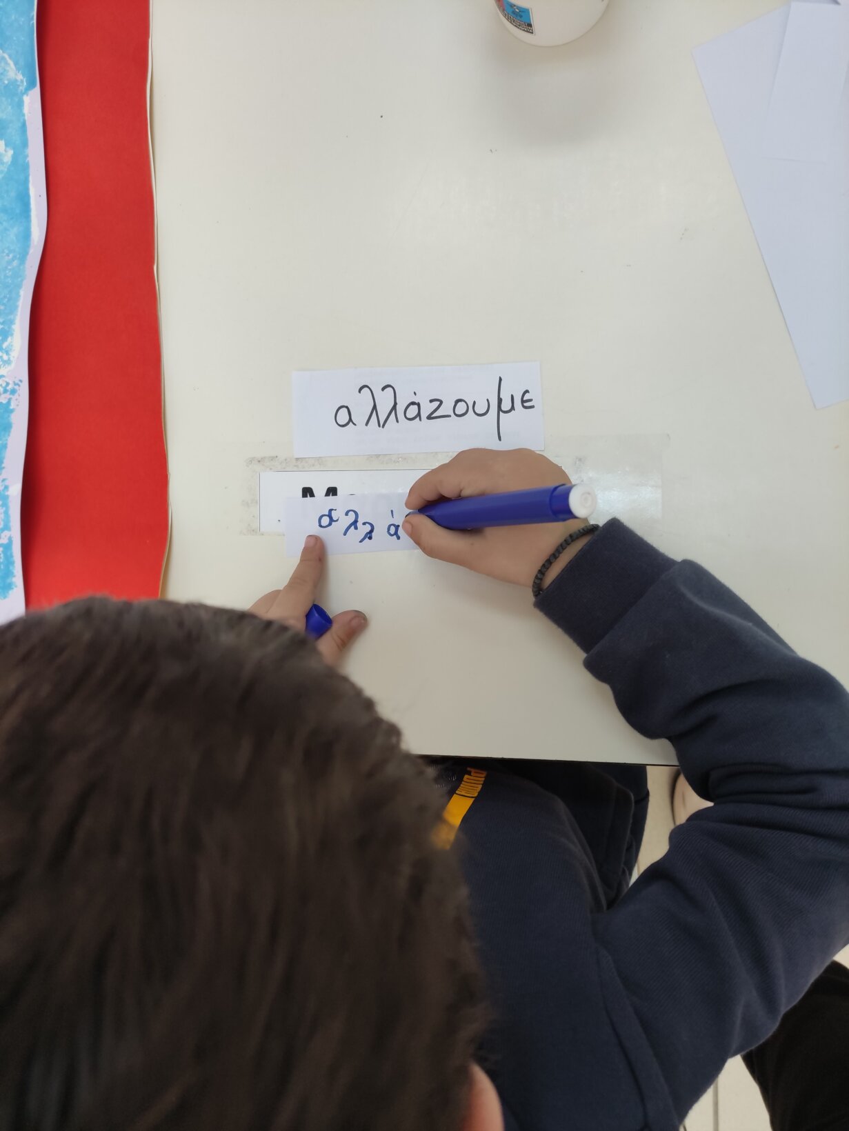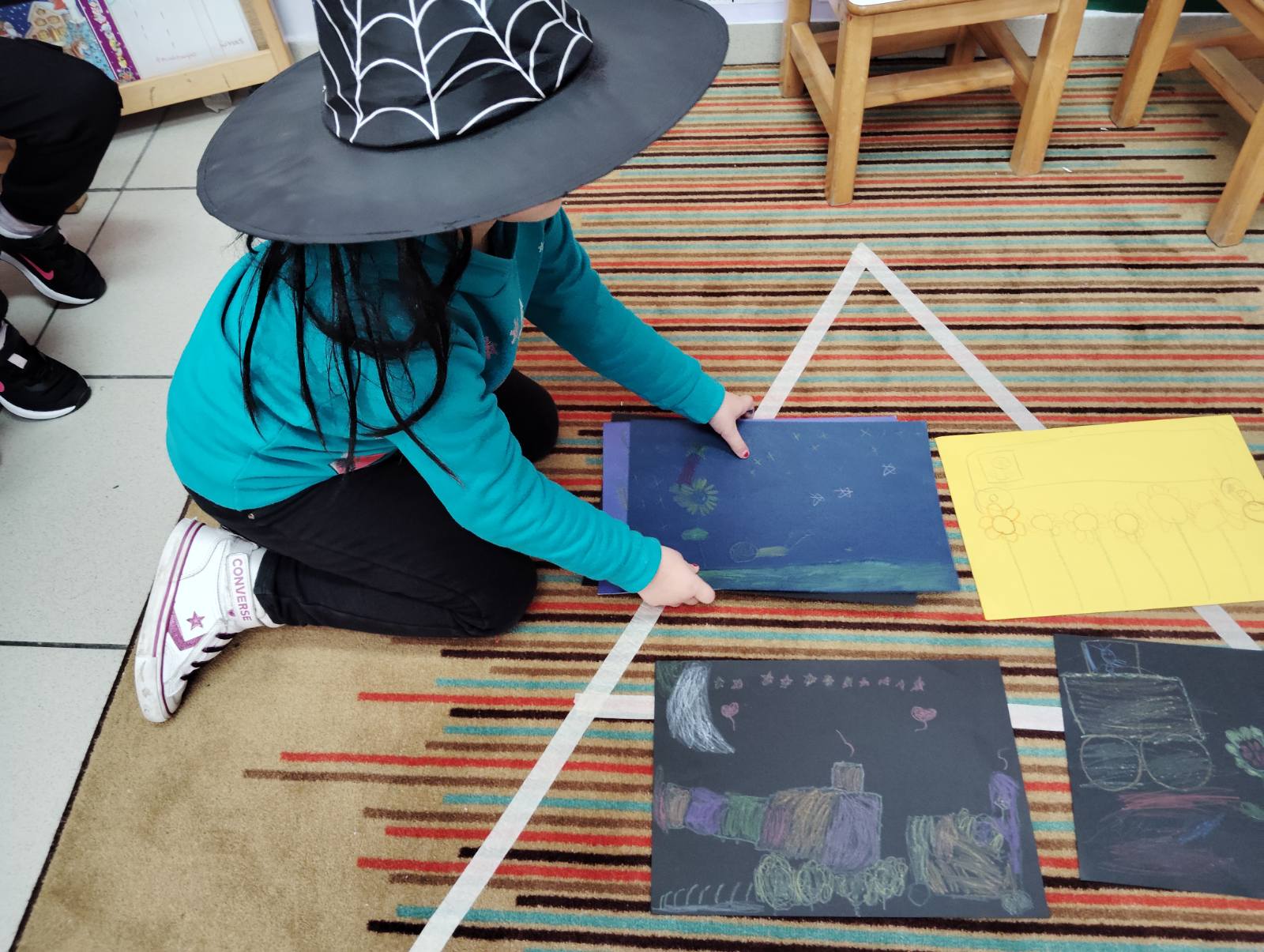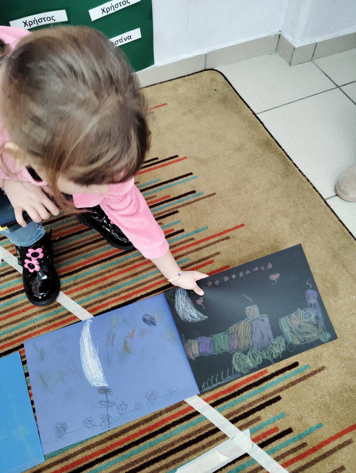 Αφού συζητήσαμε στην ολομέλεια, ακολούθησε δραστηριότητα. Τα παιδιά επέλεξαν το ζευγάρι τους και ζωγράφισαν την αγαπημένη τους σκηνή από την ταινία. Στη συνέχεια η Μάγισσα Μπερδεψουρα” ανακάτευε τις σκηνές και διάλεγε ένα παιδί να τις βάλει στη σειρά.