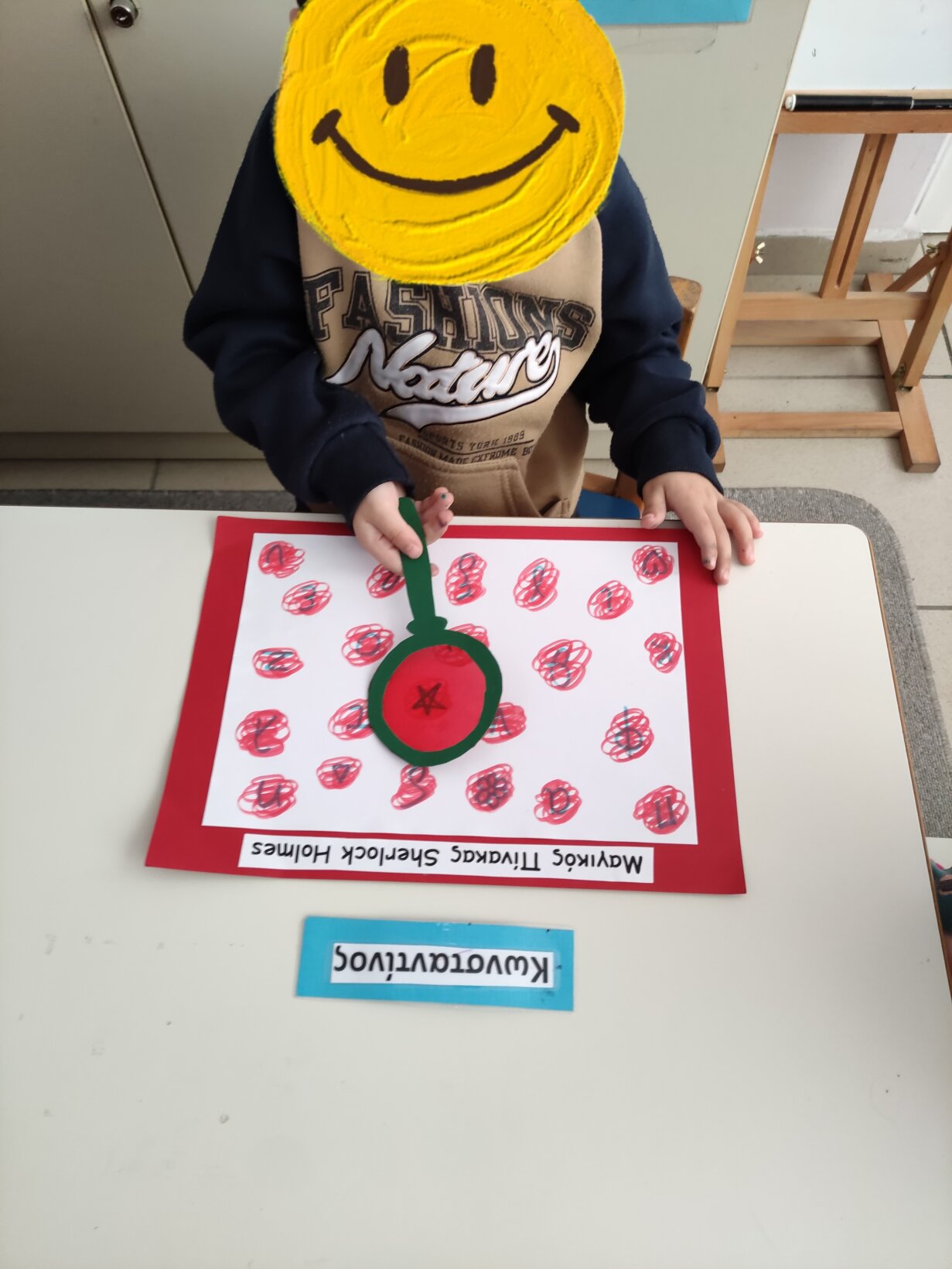 Σήμερα γίναμε Sherlock Holmes διάσημοι ντετέκτιβς και προσπαθήσαμε να βρούμε όλα τα χαμένα γράμματα που ψάχναμε! Ξεκινήσαμε με τα γράμματα των ονομάτων μας και αύριο θα ψάξουμε άλλα γράμματα από άλλες λέξεις που μας ενδιαφέρουν! Α ξεχάσαμε να σας πούμε πως στην πορεία βρήκαμε και αγαπημένα μας σύμβολα , όπως το αστέρι και πολλά άλλα!