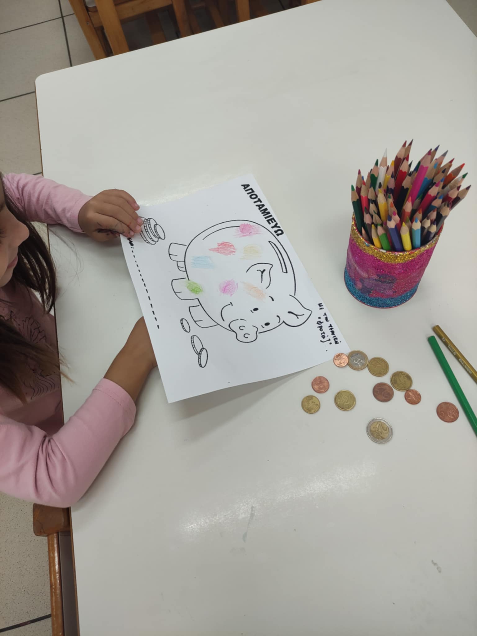 Με αφορμή το παραμύθι<< ο τζίτζικας και ο μέρμηγκας>> ,μιλήσαμε για την ημέρα της αποταμίευσης.είδαμε στον υπολογιστή το παραμύθι ,συζητήσαμε τα νομίσματα και πώς τα αποκτούμε και γιατί είναι χρήσιμο να τα αποταμιεύουμε,κάναμε τα αντίστοιχα φύλλα εργασίας. Τέλος φτιάξαμε το δικό μας κουμπαρά. “Φασούλι το φασούλι” καθημερινά γεμίζουμε τον κουμπαρά της γνώσης μας!!!!