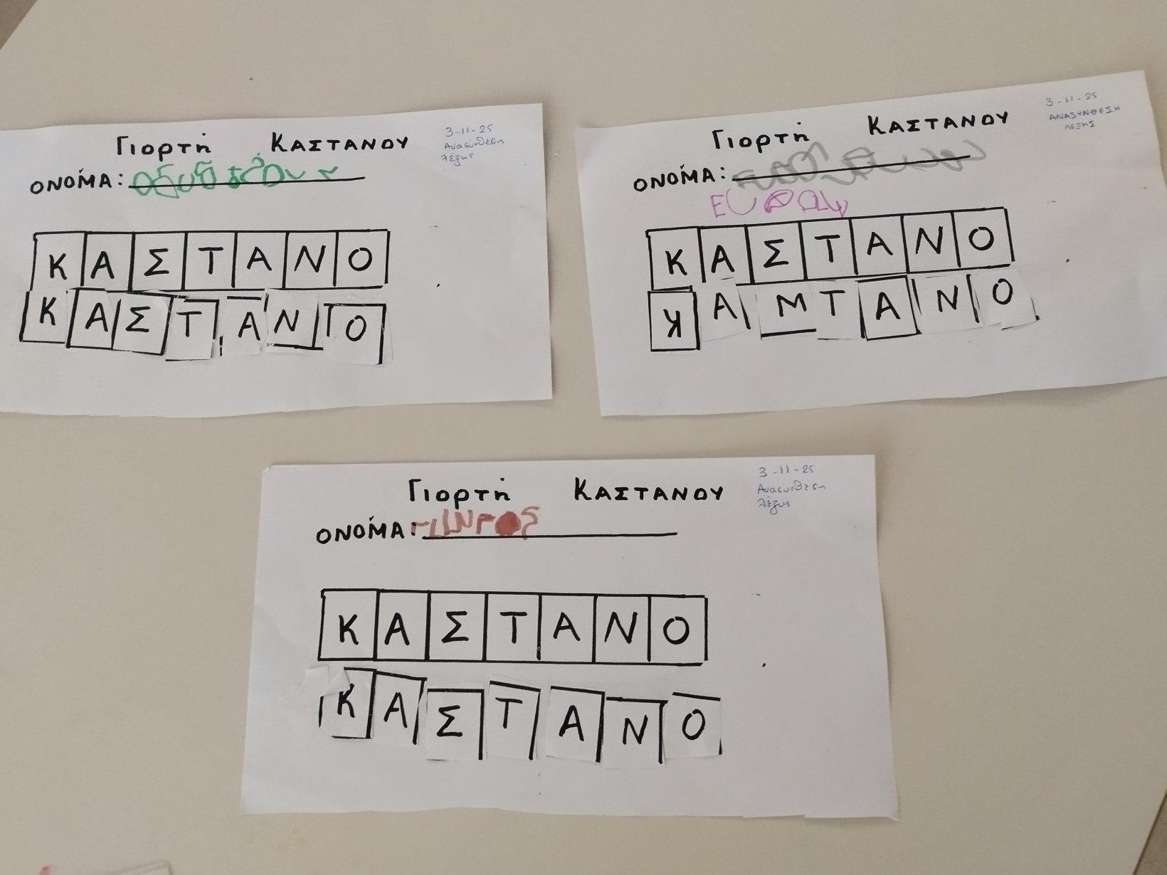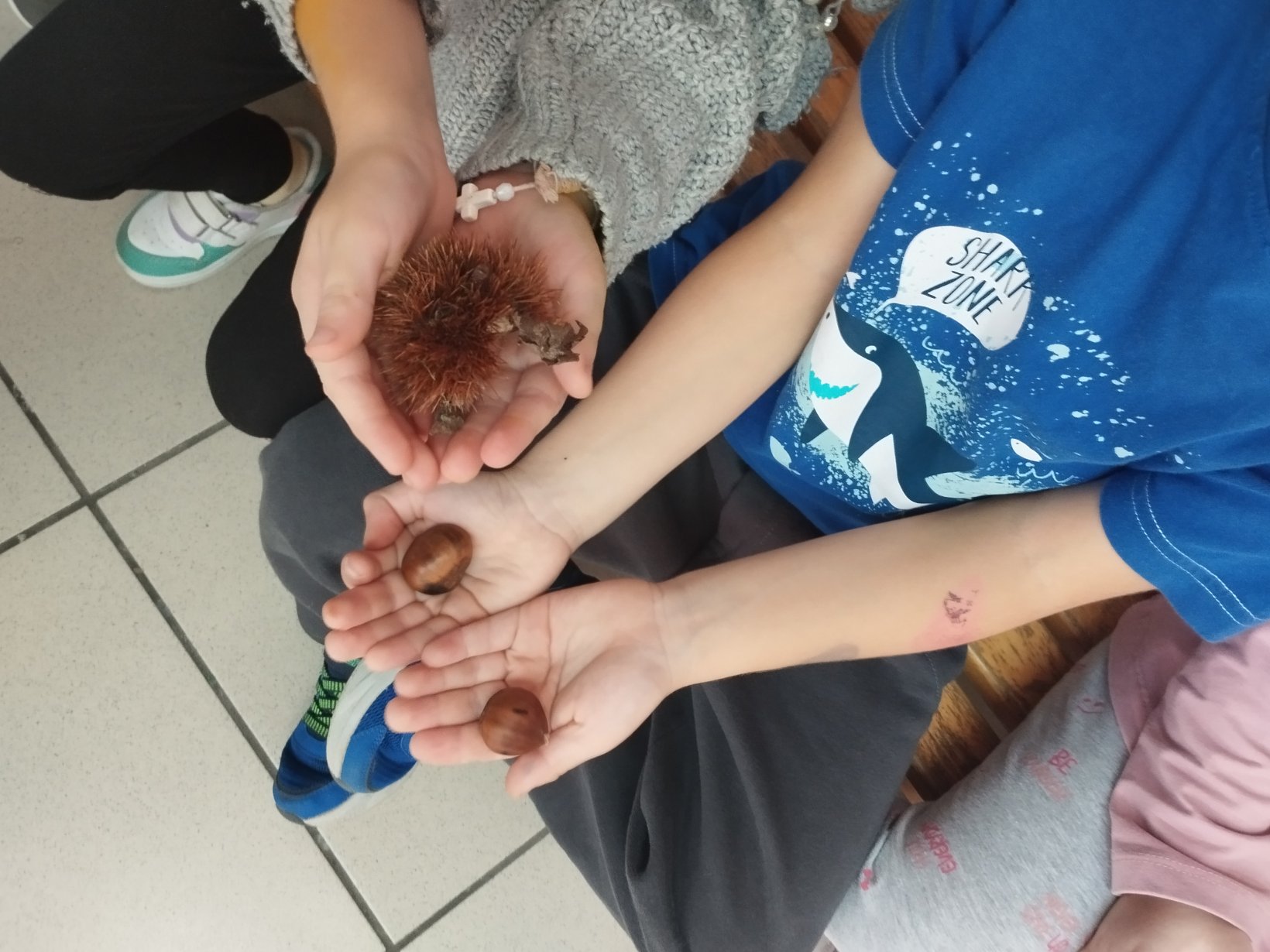 Με αφορμή τη γιορτή του κάστανου,, τα παιδιά είχαν την ευκαιρία να δουν από κοντά κάστανα και αχινούς. Διαβάσαμε το σχετικό παραμύθι ,είπαμε το τραγούδι για τα κάστανα ,συζητήσαμε για το επάγγελμα του καστανά,κάναμε το σχετικό φύλλο εργασίας και φυσικά δοκιμάσαμε κάστανα ψητά ,ωμά και βραστά ενταγμένα όλα αυτά στο Εργαστήριο Δεξιοτήτων για τη διατροφή.