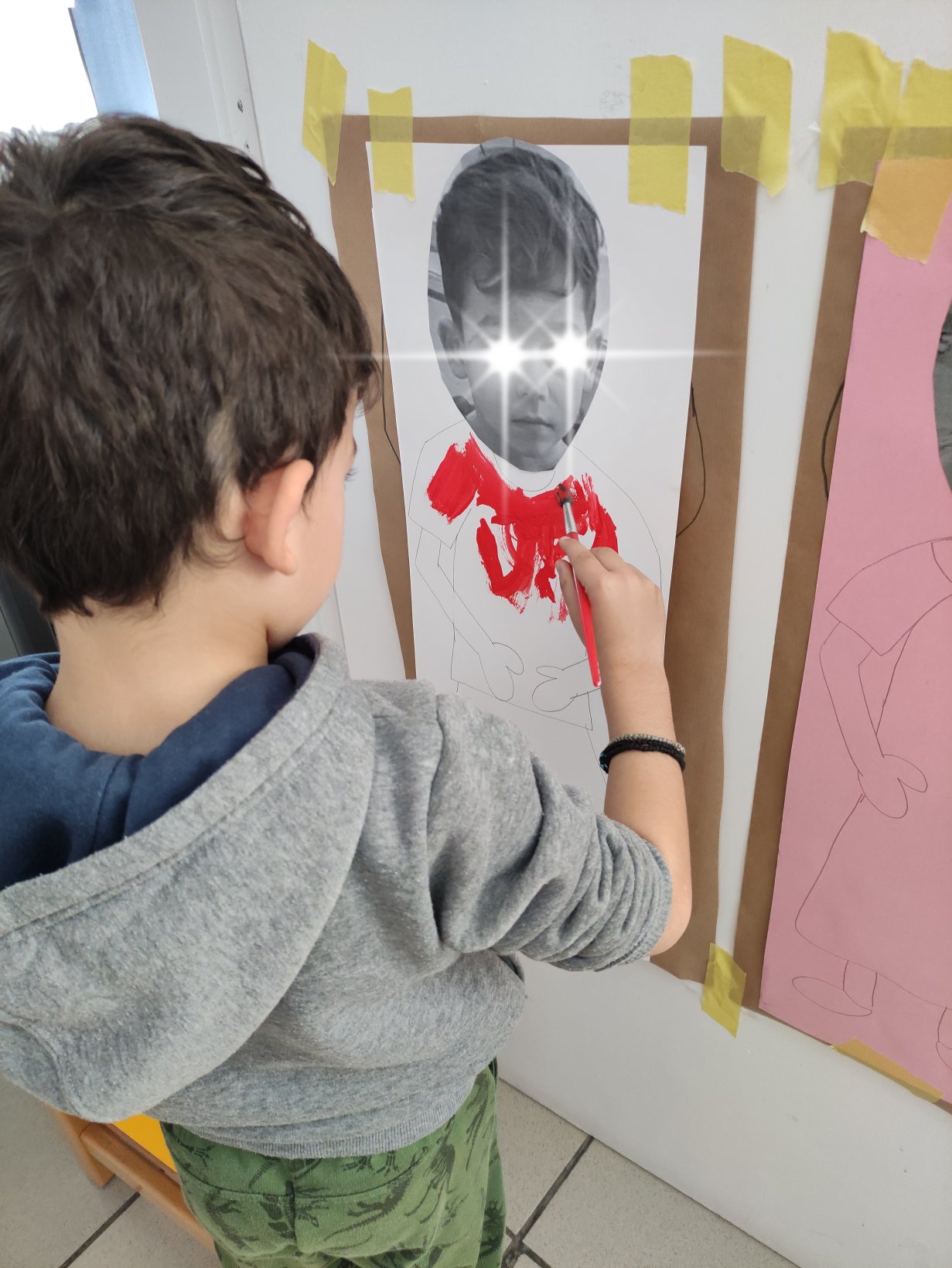 Όταν βάφουμε στο σχολείο με πινέλα είναι πάντα μια ωραία μέρα που την απολαμβάνουμε πολύ! Μια τέτοια μέρα ήταν και η σημερινή! Αφού συζητήσαμε για τα μέρη του σώματος, τις λειτουργίες τους και την χρησιμότητα τους , αποφασίσαμε να ζωγραφίσουμε τους εαυτούς μας! Η κυρία μας, ζωγράφισε τα σώματα μας και εμείς διαλέξαμε τα ρούχα που θέλαμε να φοράμε και τα χρώματα τους. Μπορεί να λερωθηκαμε λίγο αλλά…το διασκεδάσαμε τοοοοσο πολύ! Πάρτε μια ιδέα!