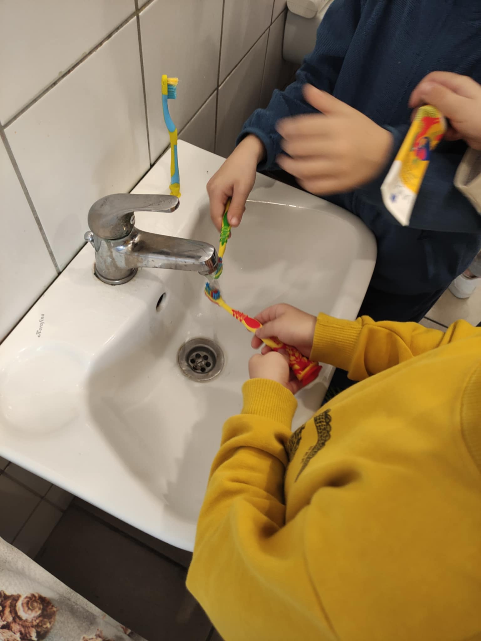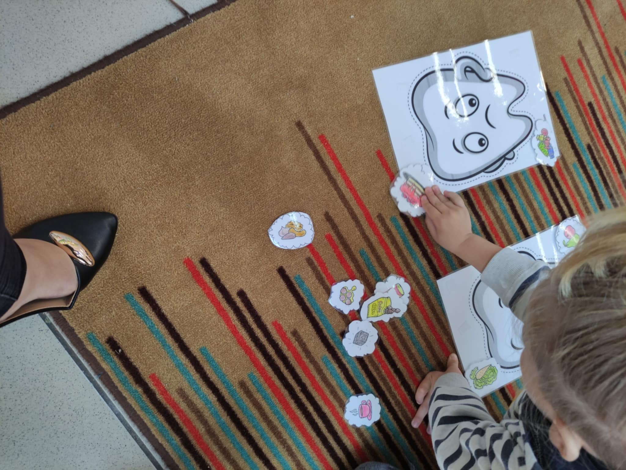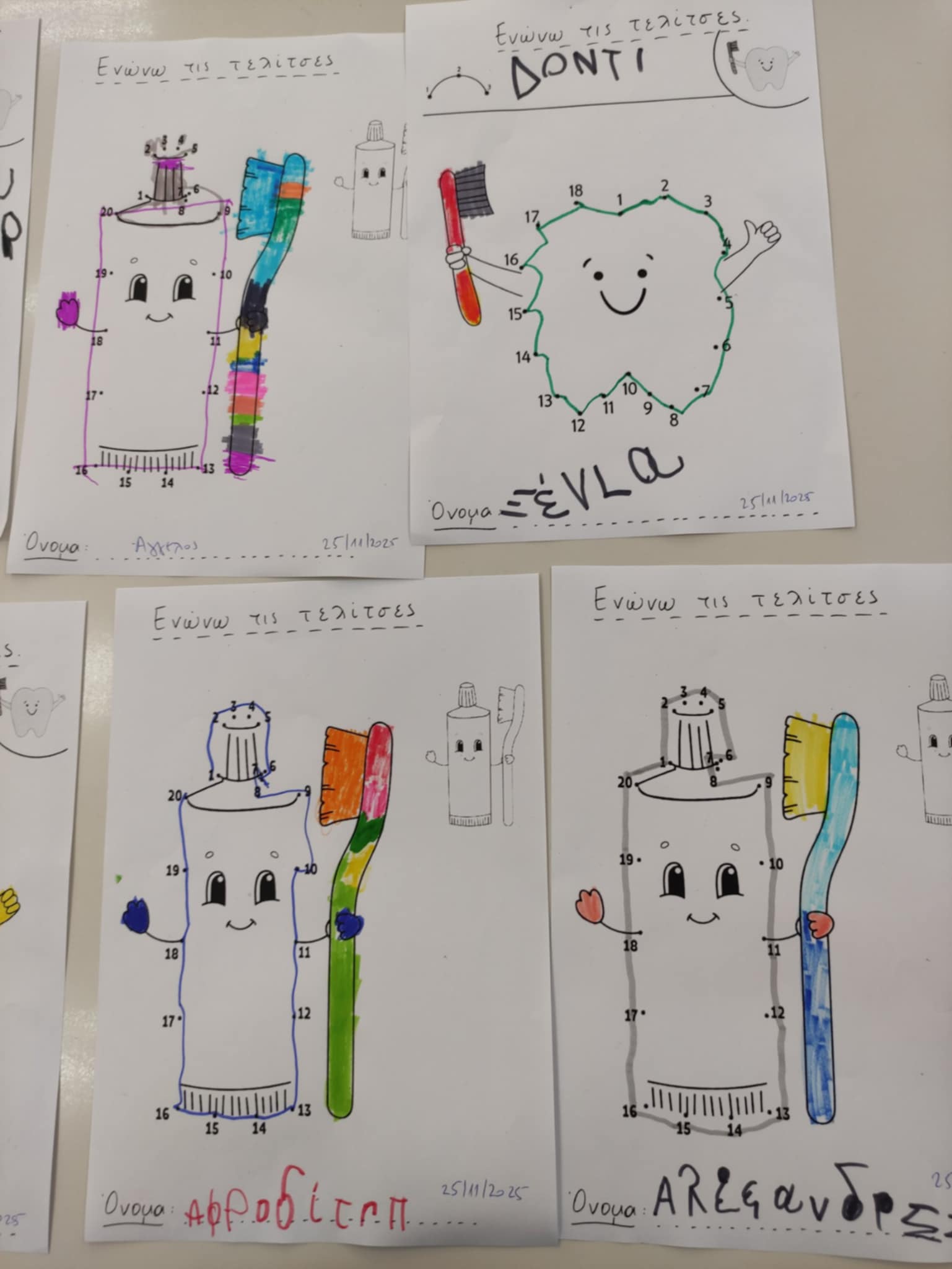 Σαν συνέχεια της διατροφής μιλήσαμε για τη στοματική υγιεινή και πώς αλληλεπιδρούν με τη σωστή διατροφή Αποκτήσαμε νέες γνώσεις ,παρακολουθήσαμε διαφωτιστικά βίντεο,βουρτσίσαμε τα δόντια μας και τελικά διασκεδάσαμε ,μαθαίνοντας ταυτόχρονα χρήσιμες συμβουλές για τη στοματική υγιεινή.Φυσικά φτιάξαμε με τα χεράκια μας πολλές και ωραίες δημιουργίες.