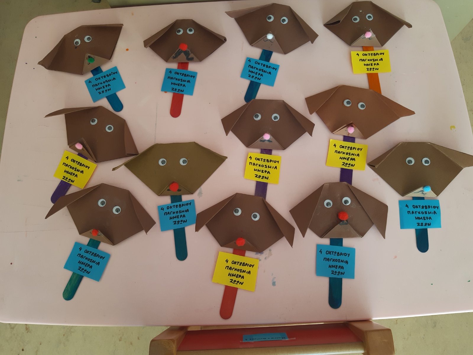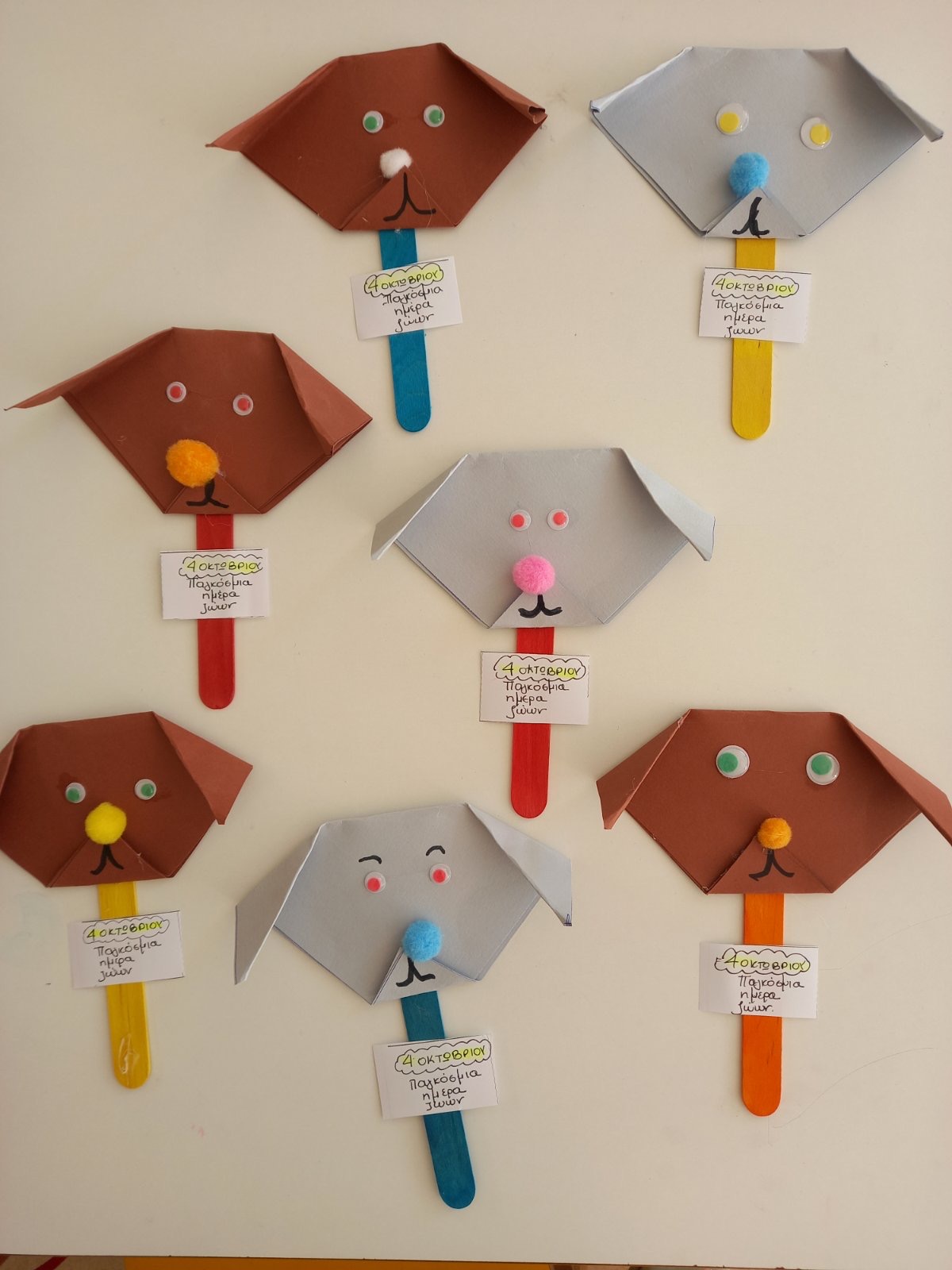 Η μέρα μας ξεκίνησε με συζήτηση γύρω από τα ζώα. Τα παιδιά αφού μοιράστηκαν με την ομάδα τους ποιο είναι το αγαπημένο τους ζωάκι, στη συνέχεια προβληματίστηκαν για το αν τα ζώα έχουν δικαιώματα και ανάγκες όπως οι άνθρωποι και τι μπορούμε να κάνουμε εμείς γι΄αυτό. Στο τέλος έφτιαξαν όμορφα σκυλάκια! Το αποτέλεσμα ήταν τέλειο!
