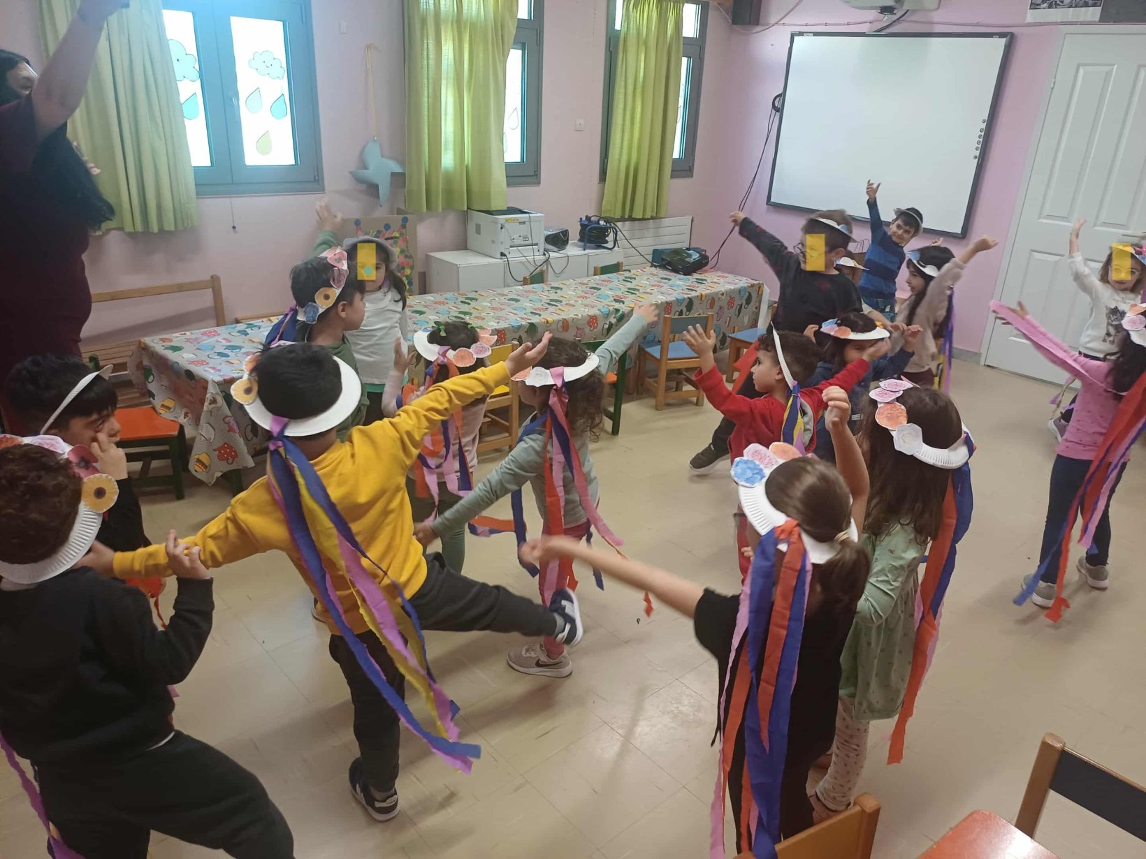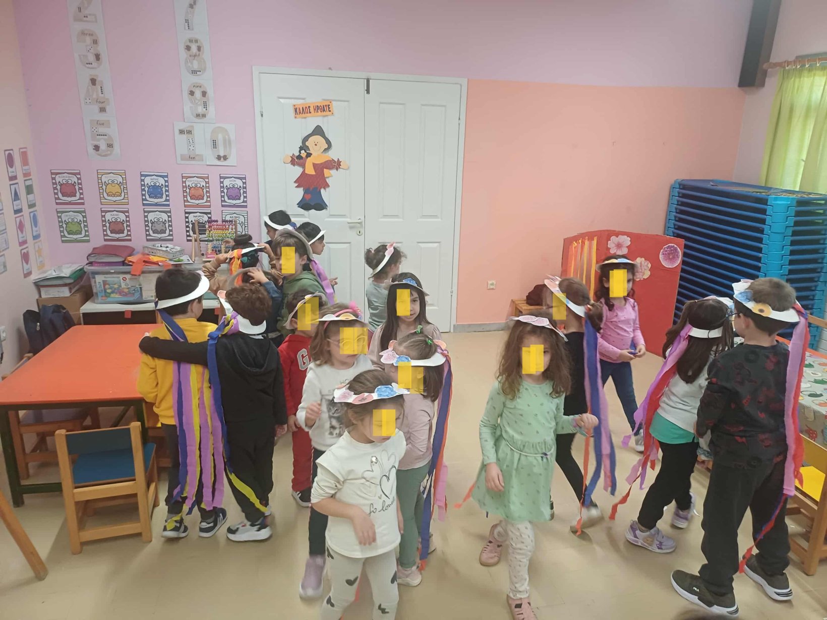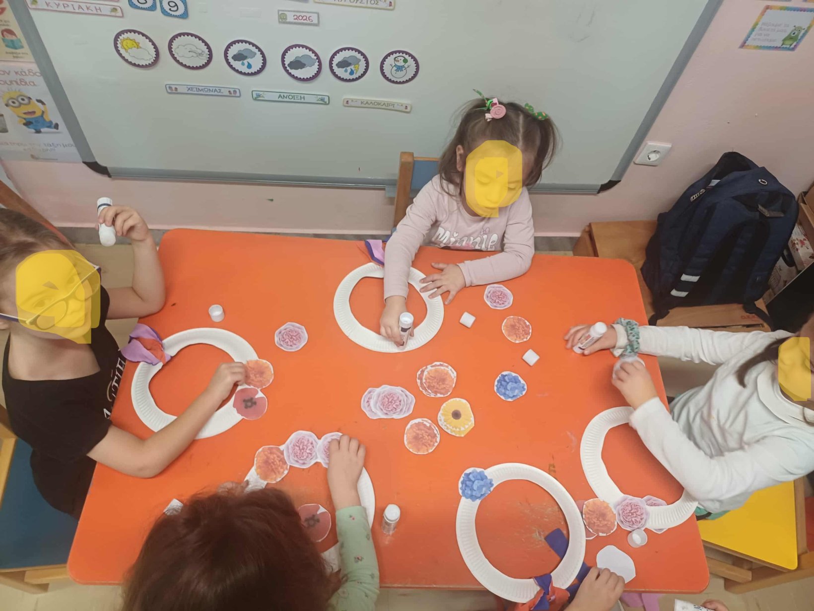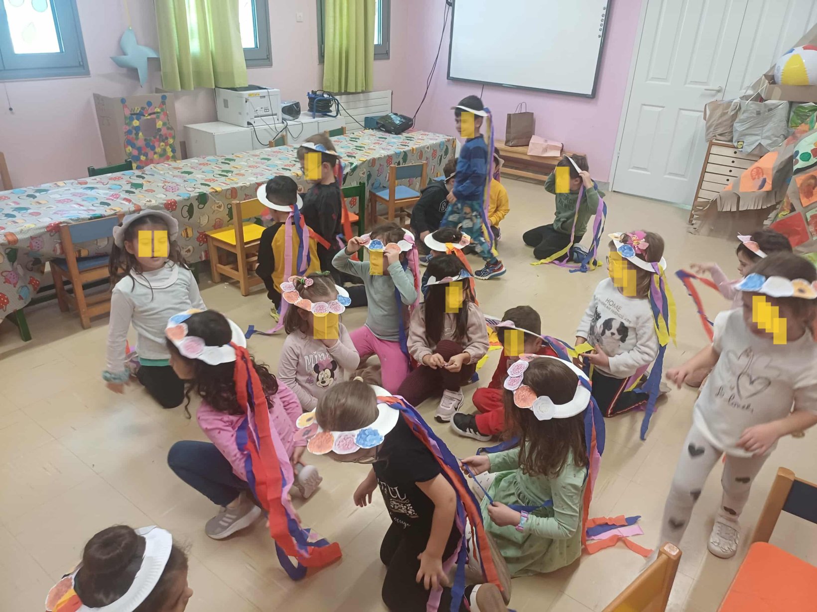 Τα παιδιά δημιουργούν τα στεφάνια των παραμυθάδων και το ζέσταμα ξεκινά.