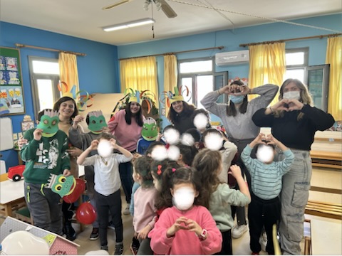 Τέλος, με αφορμή τις Απόκριες, ντυθήκαμε «ήρωες της καλοσύνης», δραματοποιήσαμε ιστορίες και παρουσιάσαμε τρόπους με τους οποίους μπορούμε να βοηθάμε έμπρακτα τους άλλους στην καθημερινότητά μας. Χορέψαμε παίξαμε και περάσαμε φανταστικά! Στο τέλος, πήραμε τα «παράσημά» μας, γιατί είμαστε πια περήφανοι μικροί εθελοντές!