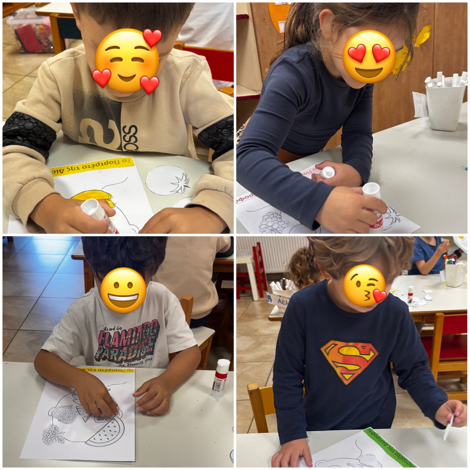 Εμπνευσμένοι από τη δουλειά του, δημιουργήσαμε κι εμείς τα δικά μας «πορτρέτα διατροφής». Χρησιμοποιήσαμε εικόνες και σχήματα από φρούτα και λαχανικά, κόψαμε, κολλήσαμε, συνδυάσαμε χρώματα και γεύσεις, και φτιάξαμε πρόσωπα μοναδικά — γεμάτα φαντασία, χαρά και… βιταμίνες!
