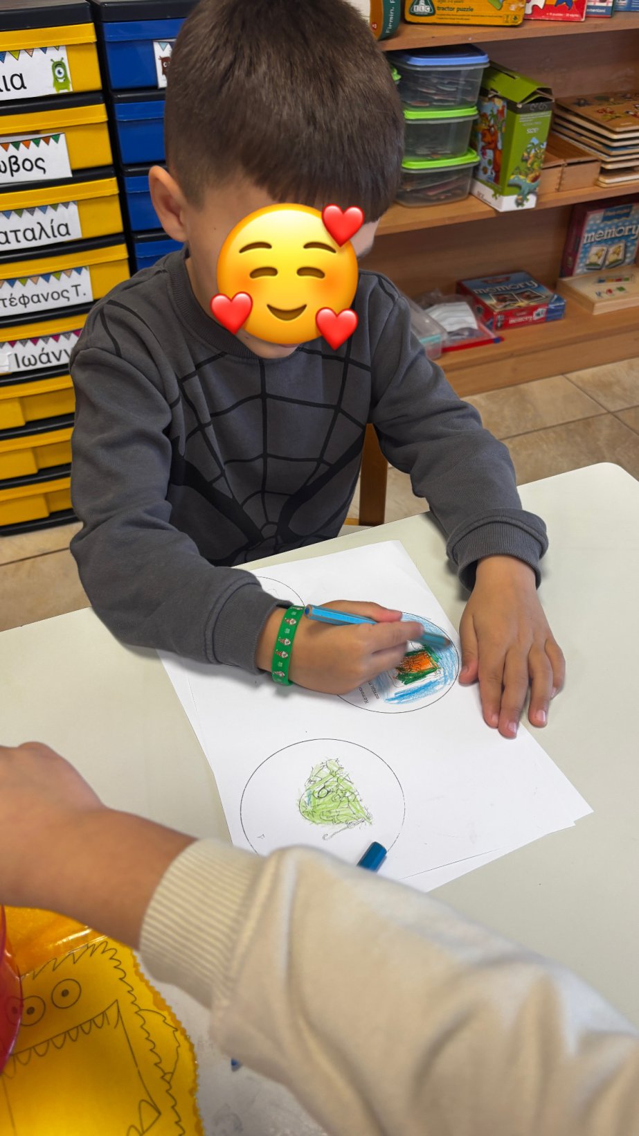 Τέλος, φτιάξαμε μια όμορφη χριστουγεννιάτικη μπάλα με θέμα την Ιστορία της Γέννησης του Ιησού. Τα παιδιά γνώρισαν με απλό και τρυφερό τρόπο τα γεγονότα της Αγίας Νύχτας και στη συνέχεια δημιούργησαν τη δική τους μπαλίτσα, τοποθετώντας μέσα μικρές φιγούρες από τη Φάτνη. Μια κατασκευή γεμάτη νόημα, που έφερε λίγη από τη γαλήνη και τη μαγεία των Χριστουγέννων στην τάξη μας.