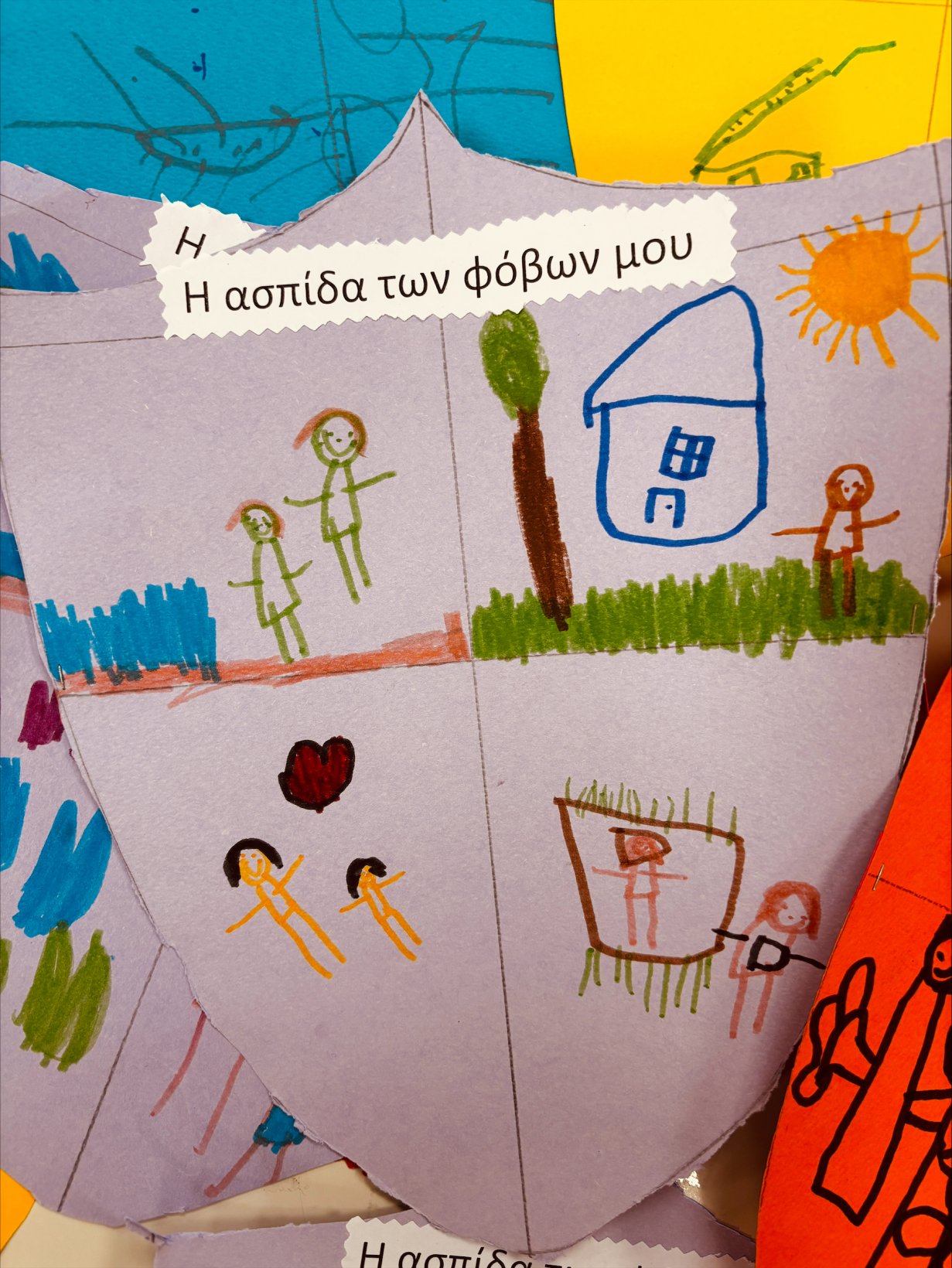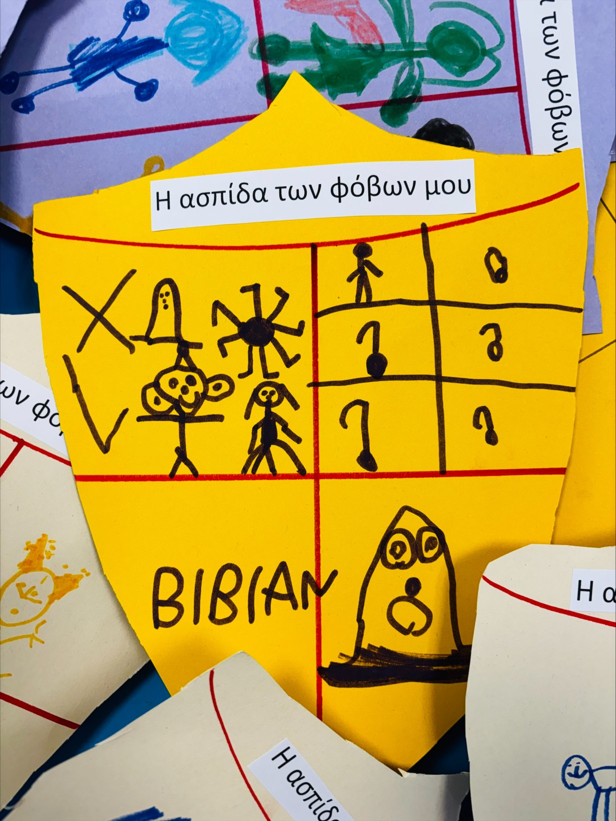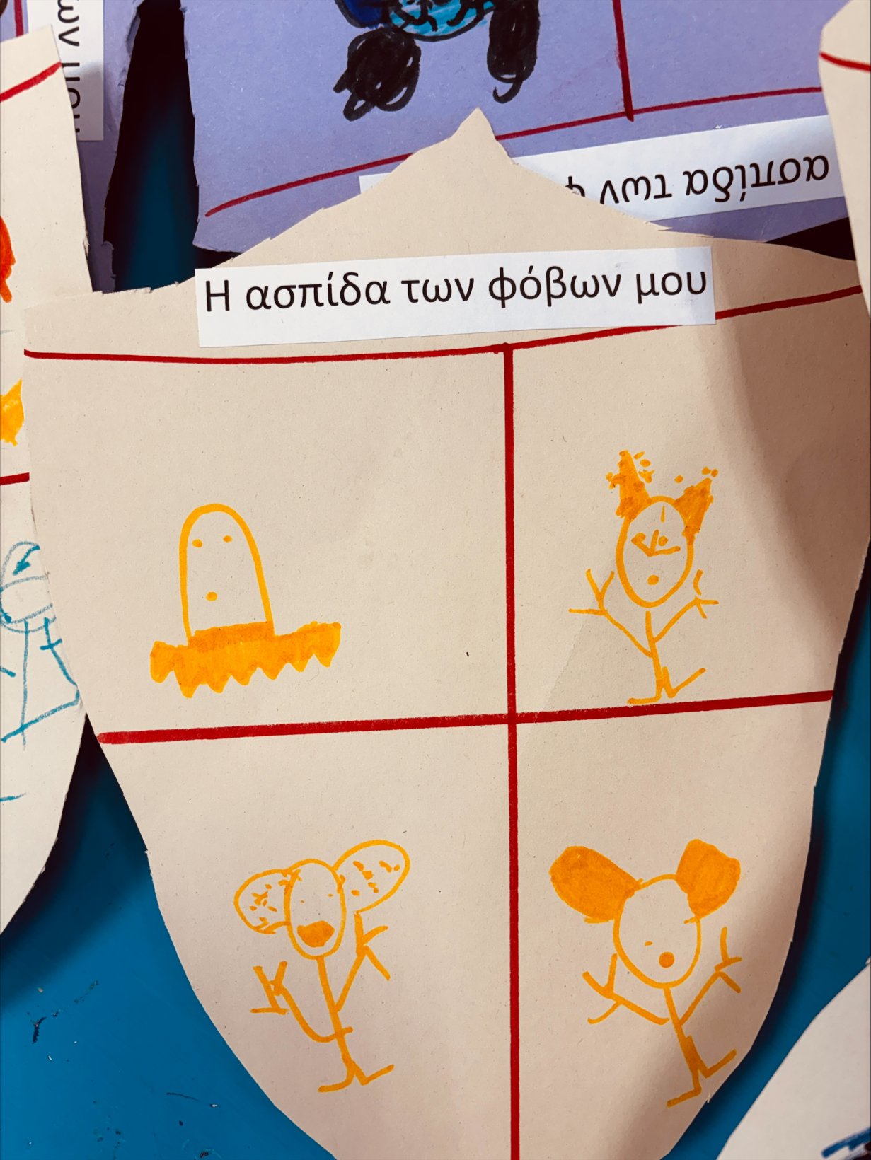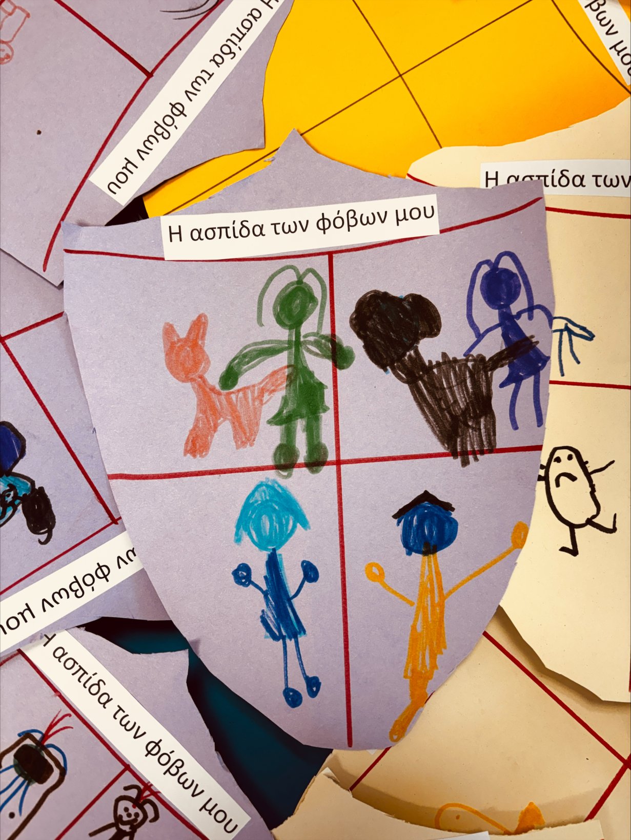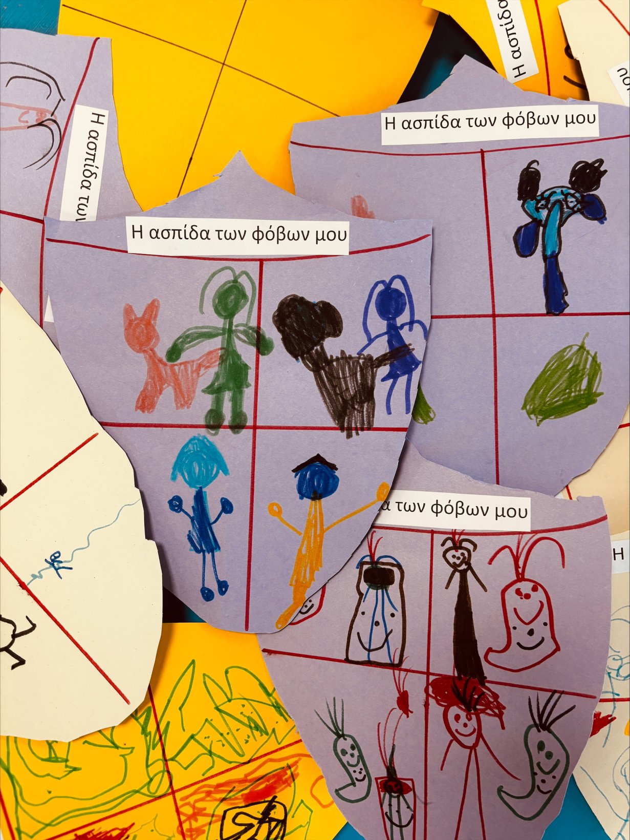 Μέσα από αυτή τη δραστηριότητα, ανακαλύψαμε ότι όλοι έχουμε φόβους, αλλά και ότι όλοι έχουμε τη δύναμη να τους αντιμετωπίσουμε. Οι ασπίδες μας έγιναν σύμβολα θάρρους, φαντασίας και αυτοπεποίθησης!