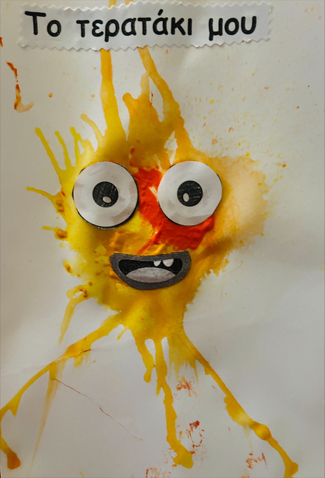 Το σώμα του απλώθηκε σαν πιτσιλιά, τα ματάκια του πέσαν σε παράξενα σημεία, και το στόμα του έγινε… **χαμόγελο!**