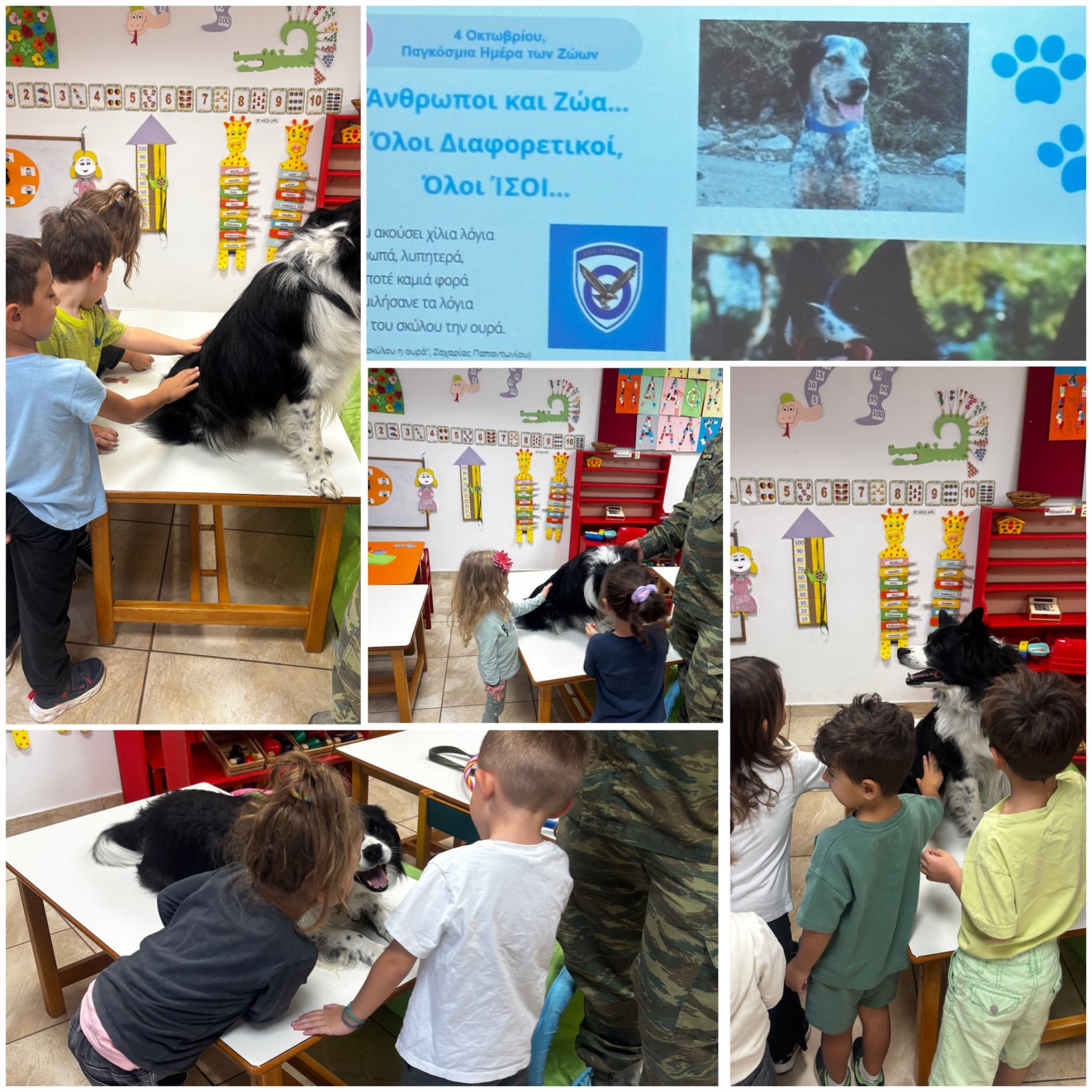 Με αφορμή την Παγκόσμια Ημέρα των Ζώων, είχαμε τη χαρά και την τιμή να φιλοξενήσουμε στο νηπιαγωγείο μας μια ξεχωριστή επίσκεψη από τη Διεύθυνση Υγειονομικού του Γενικού Επιτελείου Αεροπορίας.